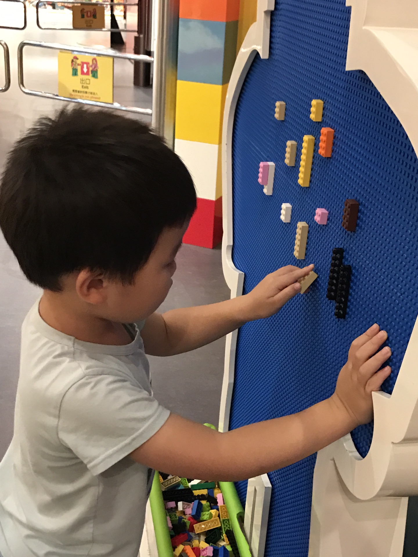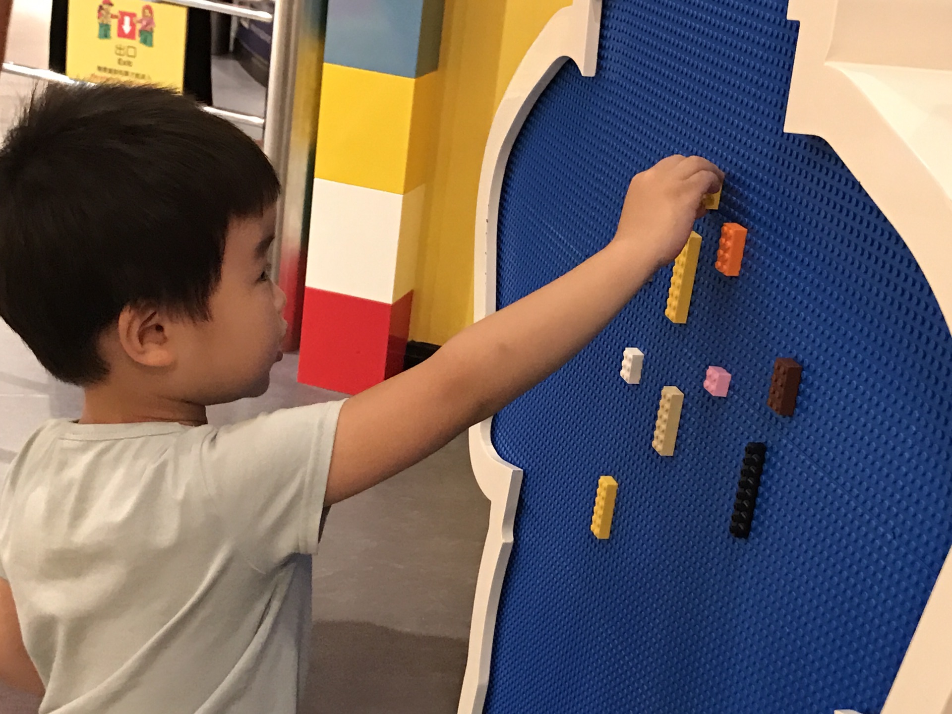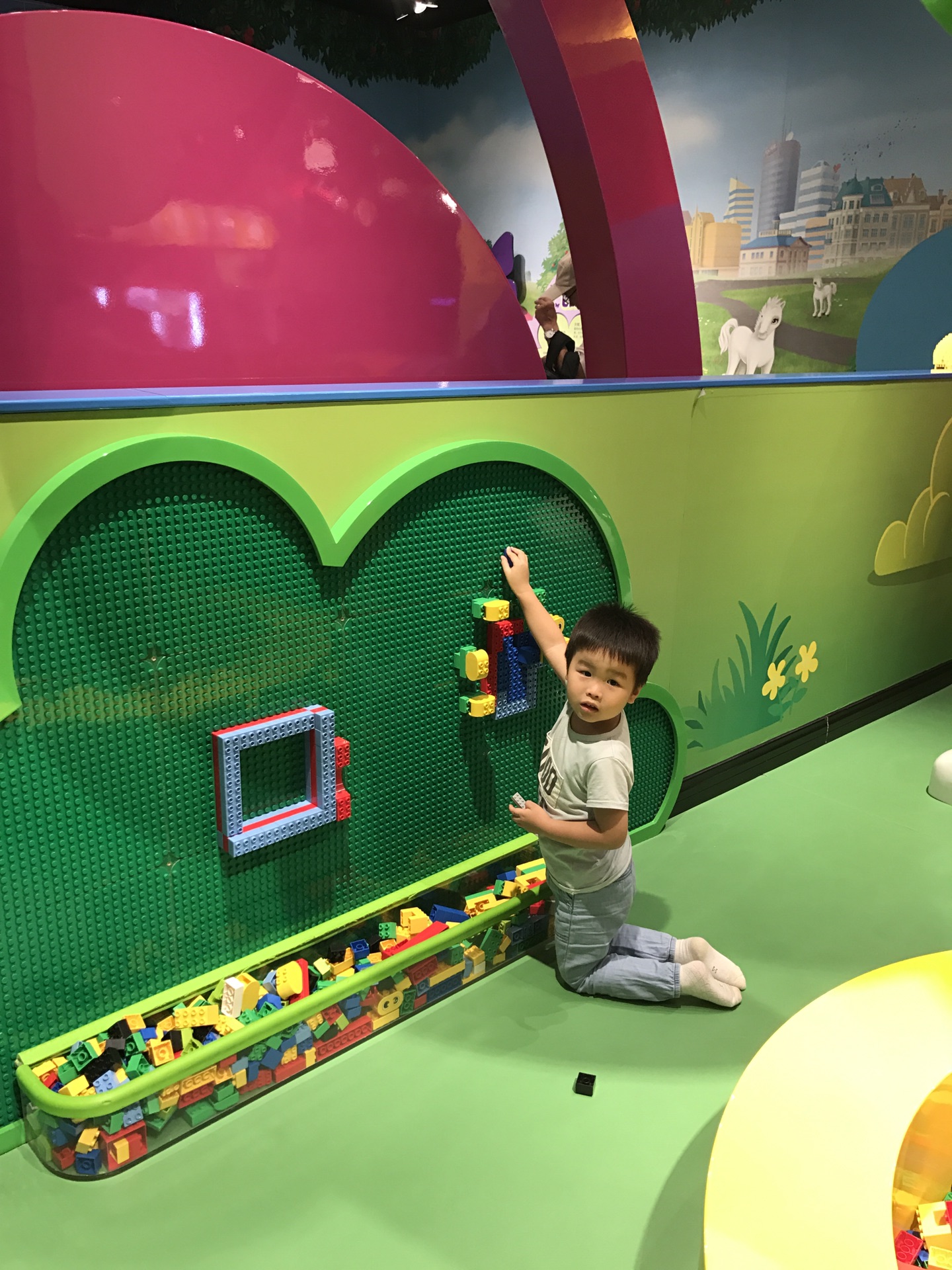 最后,开放空间里也散着许多乐高空间,可以消磨许多时光。看看我自己点缀的某面乐高墙。妈妈说蛮艺术的,给你们欣赏一下。