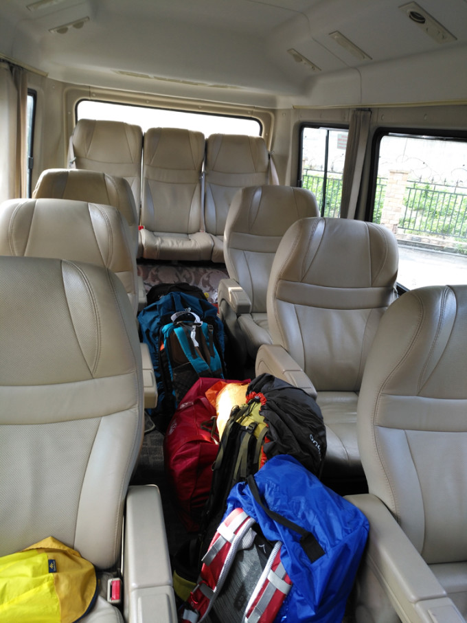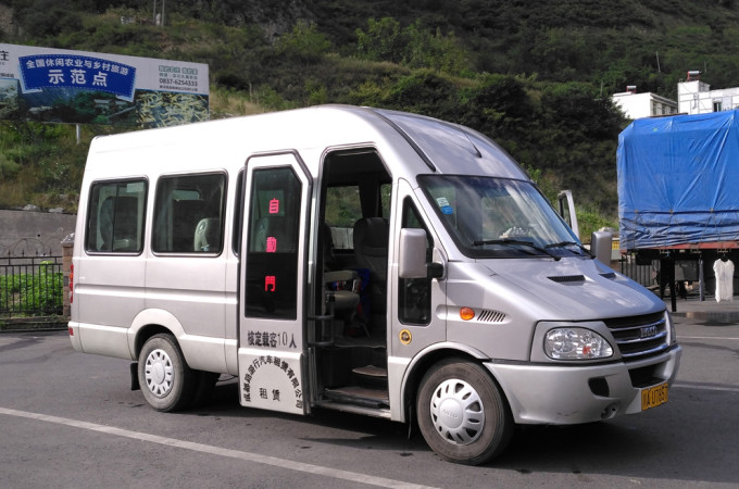 8月9日,早晨在酒店吃过早餐,接我们的车已经来了,拿好行李,上车。我们这支队伍只有7名队员,两名领队,共9人,给我们派的这样的车。我不懂车,不知道这叫什么车。