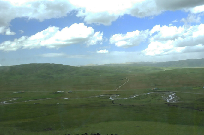 8月10日,早上吃过早餐,继续乘车出发。路上遇到交通管制,等候了20多分钟,不放过任何机会,下去拍照。