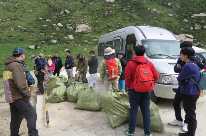 我们把行李拿下车,装到俱乐部准备好的编织袋里,交给马帮。
