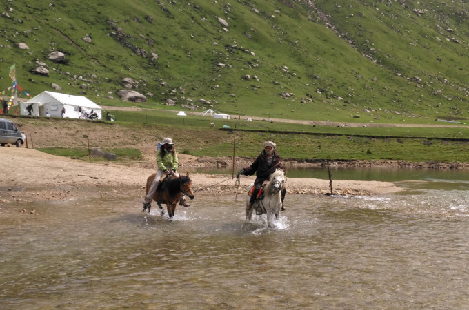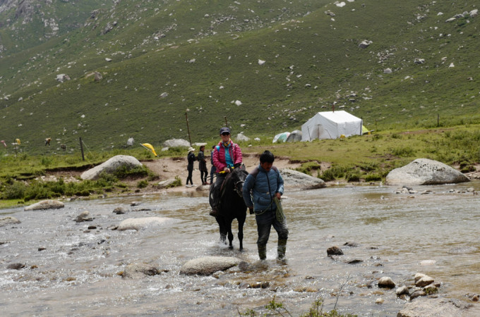 也可以骑马过河。虽然是自已的马帮,但骑马过河要收10元钱。我也腐败了一把,骑马过的河。