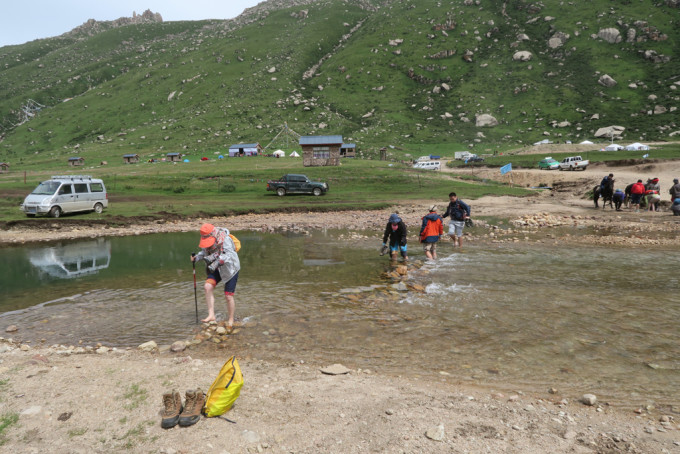 徒步开始,没走几步就遇到河流挡路,有人脱鞋趟水过河,据说河水很凉。