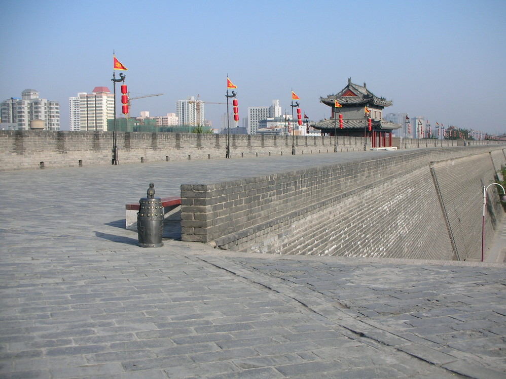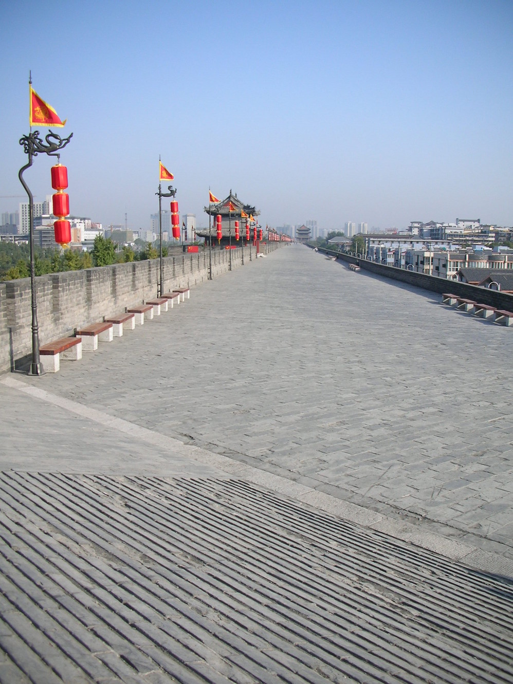 因为要赶飞机, 我们起很早就去了南城墙, 几乎没什么人. 很开阔的路面.