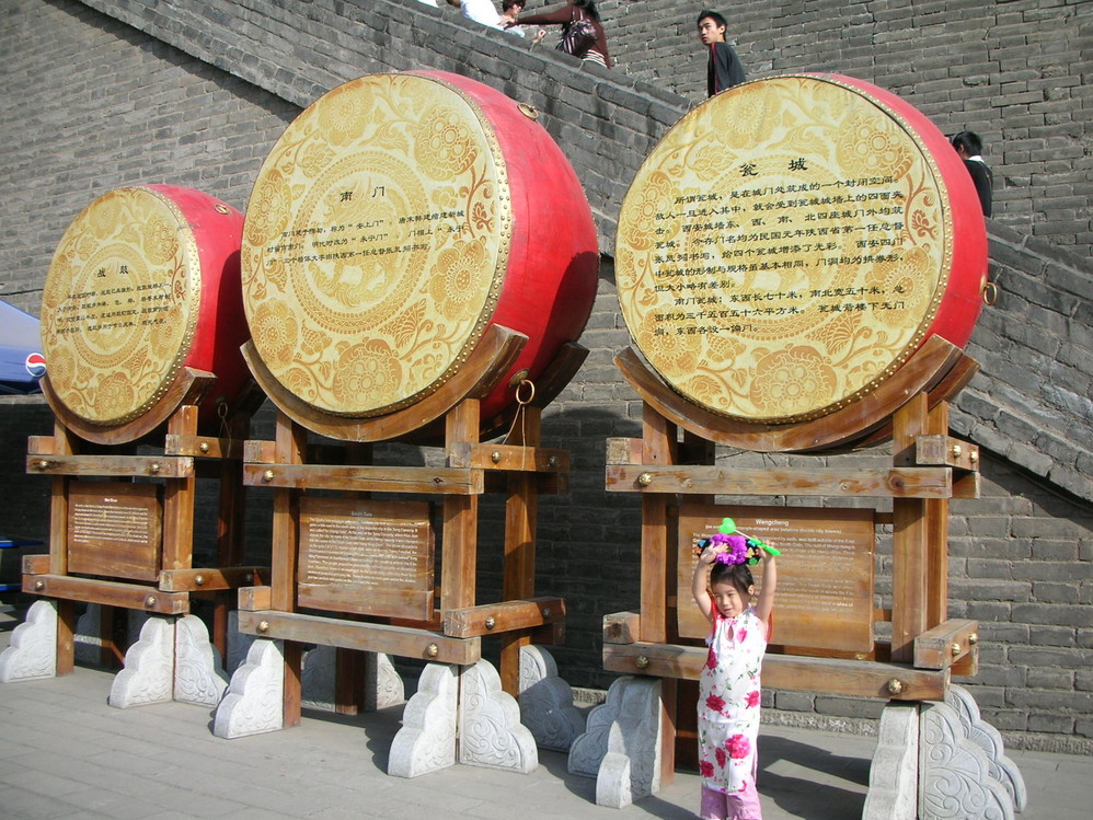 南城简介在鼓面上, 小妞大雁塔逛夜市时买的头饰, 刚好配开封买的旗袍, 可惜要风度也要温度, 搭配长裤有些怪怪的