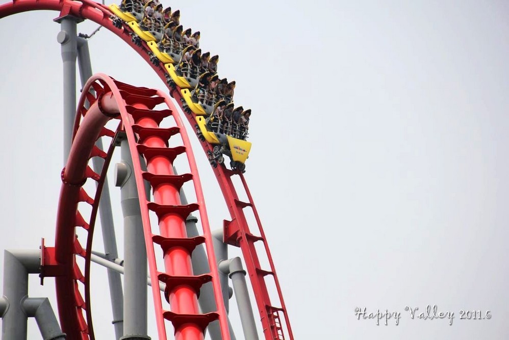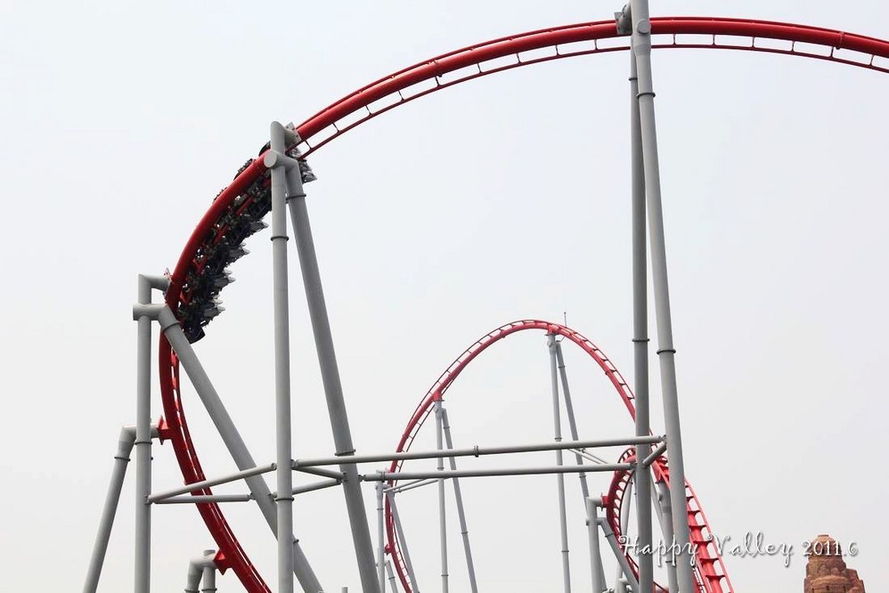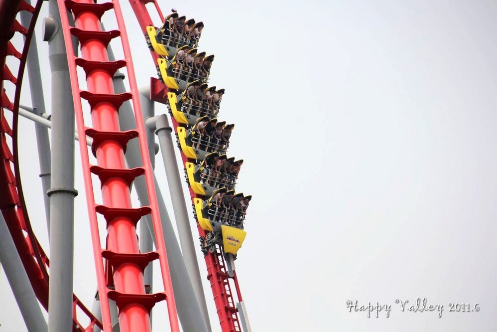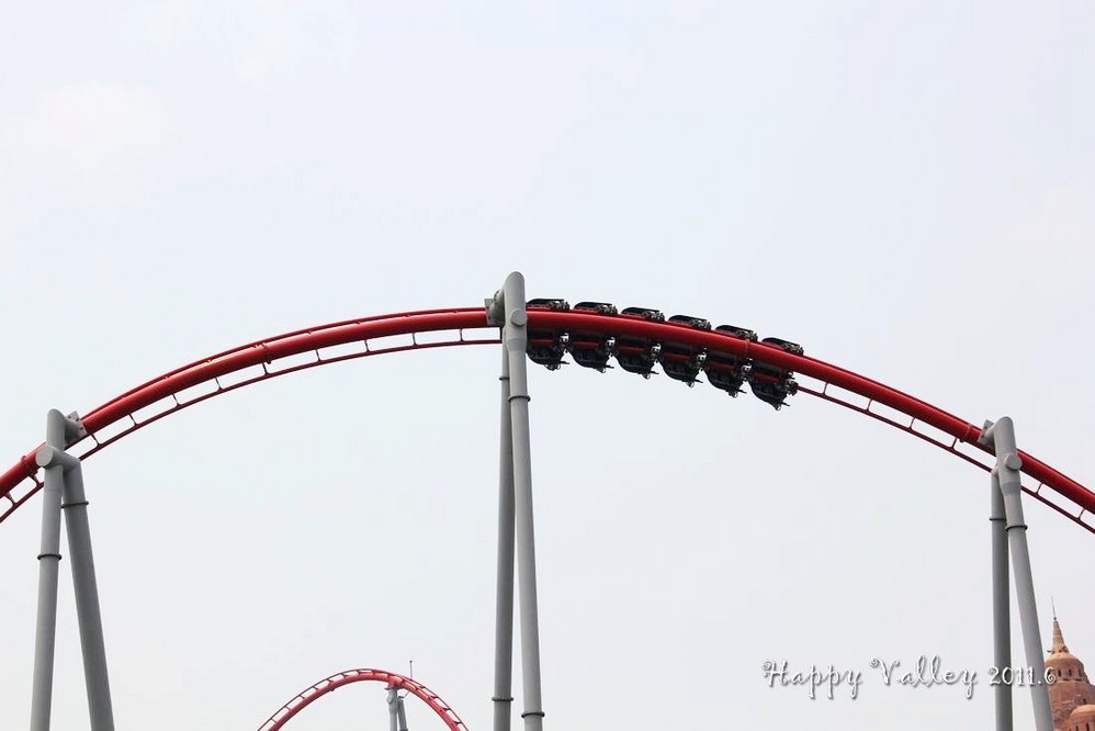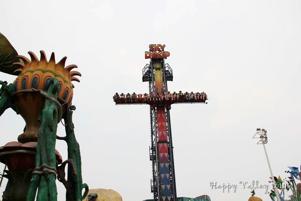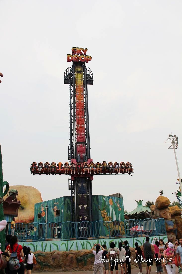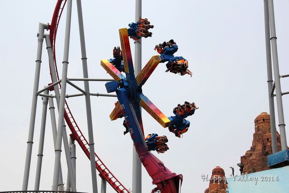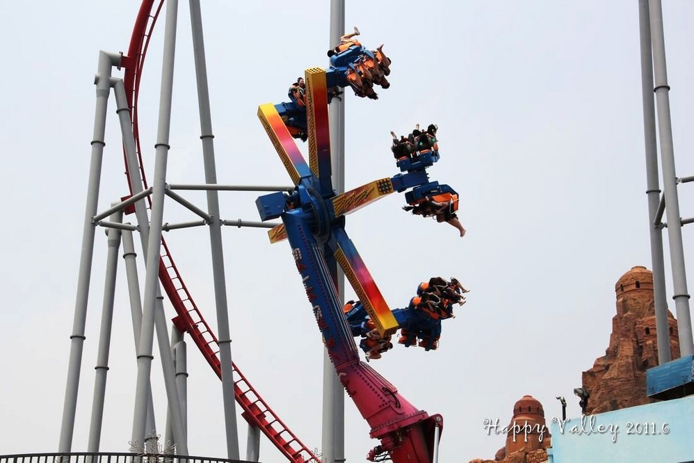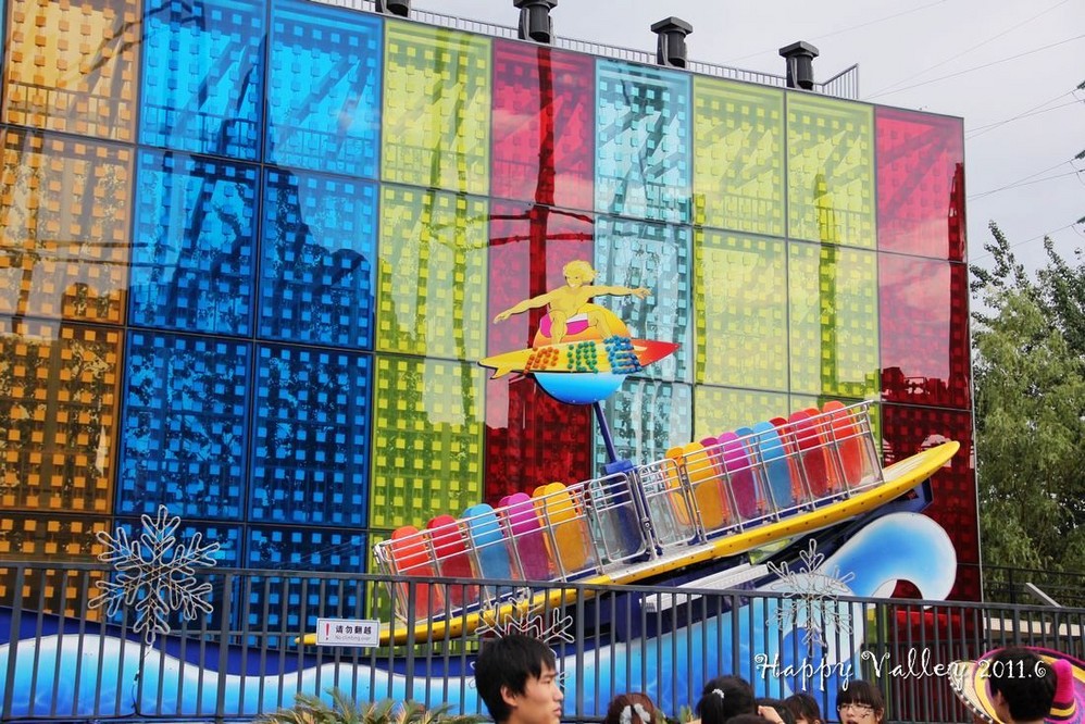 朋友给了我一张赠票,把我带进门,就忙他的去了。我自己一个人闲逛着。一进入园区就可以看到和听到那“极速飞车”的刺激,要冲上60多米高的天空,还要接着一连串的俯冲、爬升、滑行。当冲出去的那一刹那便开始伴随着尖叫声,听着很“恐怖”,没点儿勇气的人还真坐不了。