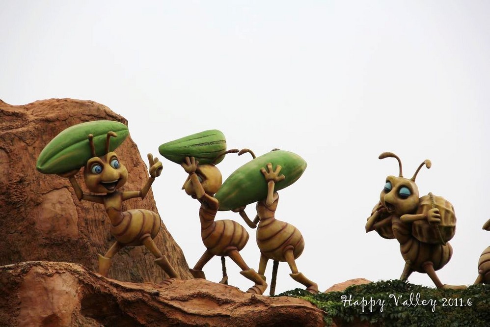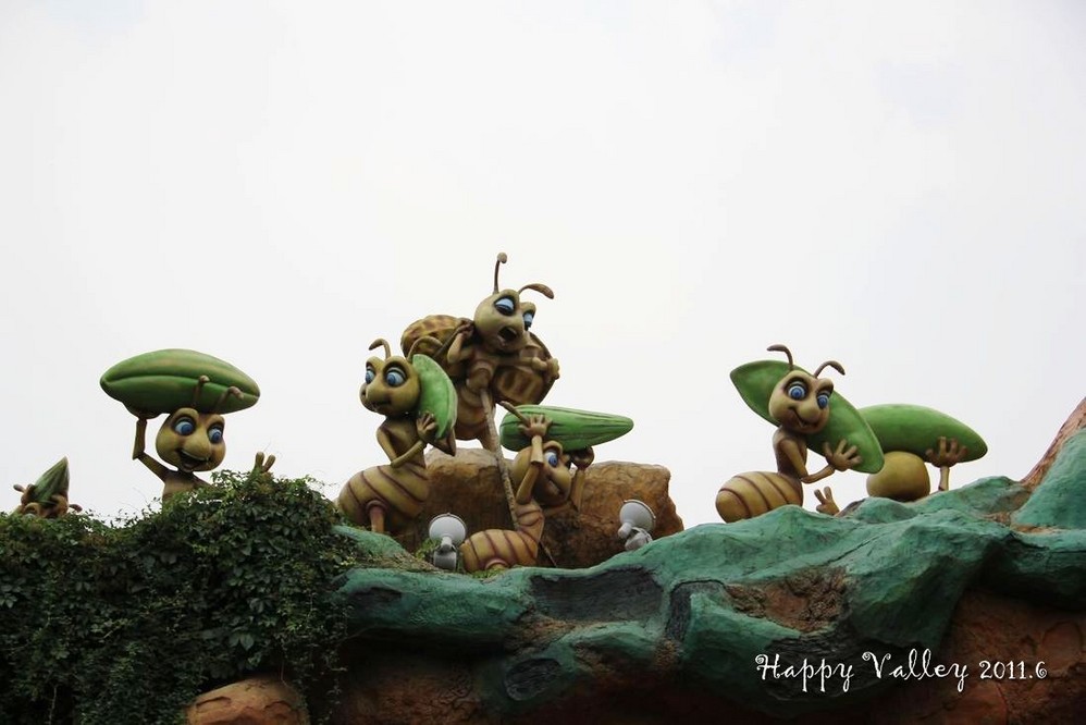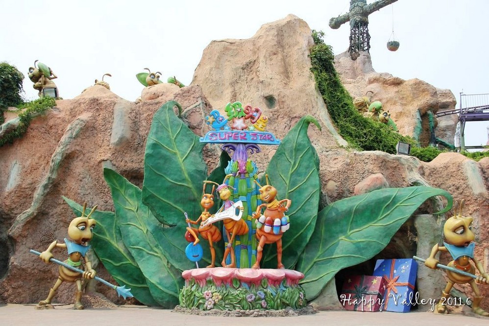 在这个欢乐的区域中有很多的游戏项目,有飞蚁战队、虫虫派对、丰收时刻、欢乐泡泡、小青蛙跳、尖峰时刻、欢欢杯、Disk “O”等等。当然了,也有许多项目只能是小朋友们玩的了,我只能看着那些可爱的卡通造型,多照两张相了。在这里的皇宫影院还可以看4D大片《Super Stars》。