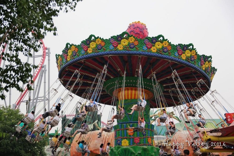 我先来到的是“欢乐时光”区,先被吸引的是“欢乐风火轮”,也挺“恐怖”的,都是头朝下转来转去的,伴随着尖叫声。