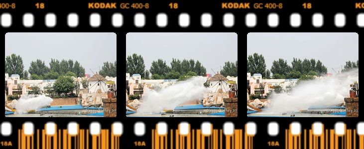 这里有一点要特别提一下,在一些项目的出口处,像香港 迪士尼一样都有主题商店和高速摄影中心,会捕捉到游客在飞驰的“丛林飞车”、腾空摇摆的“太阳神车”上行色大变的精彩瞬间。没想到还真拍到我了,留下了坐“太阳神车”时面部都已经被风吹得变形的瞬间。