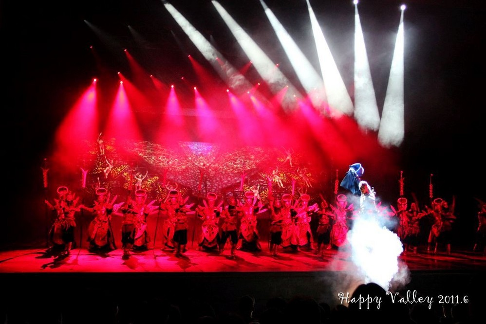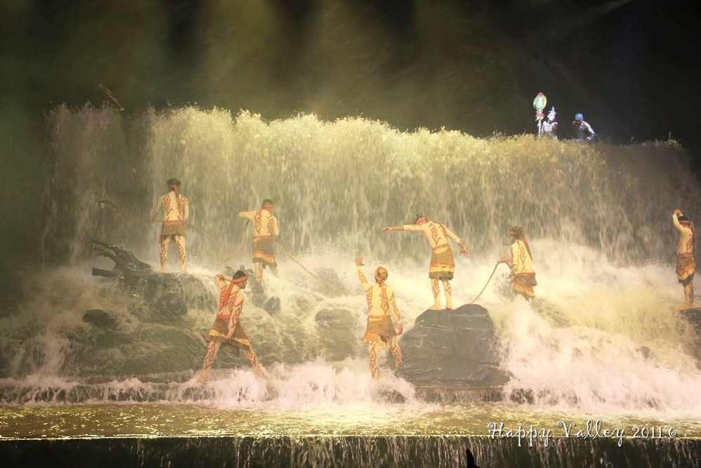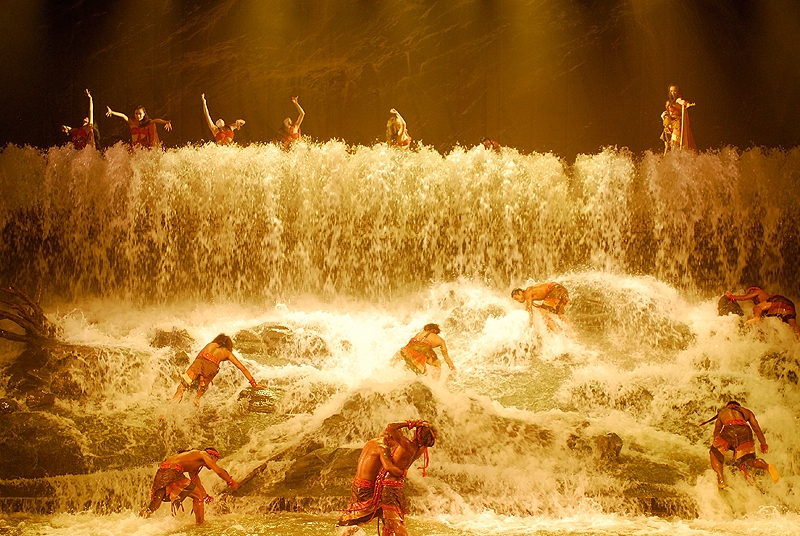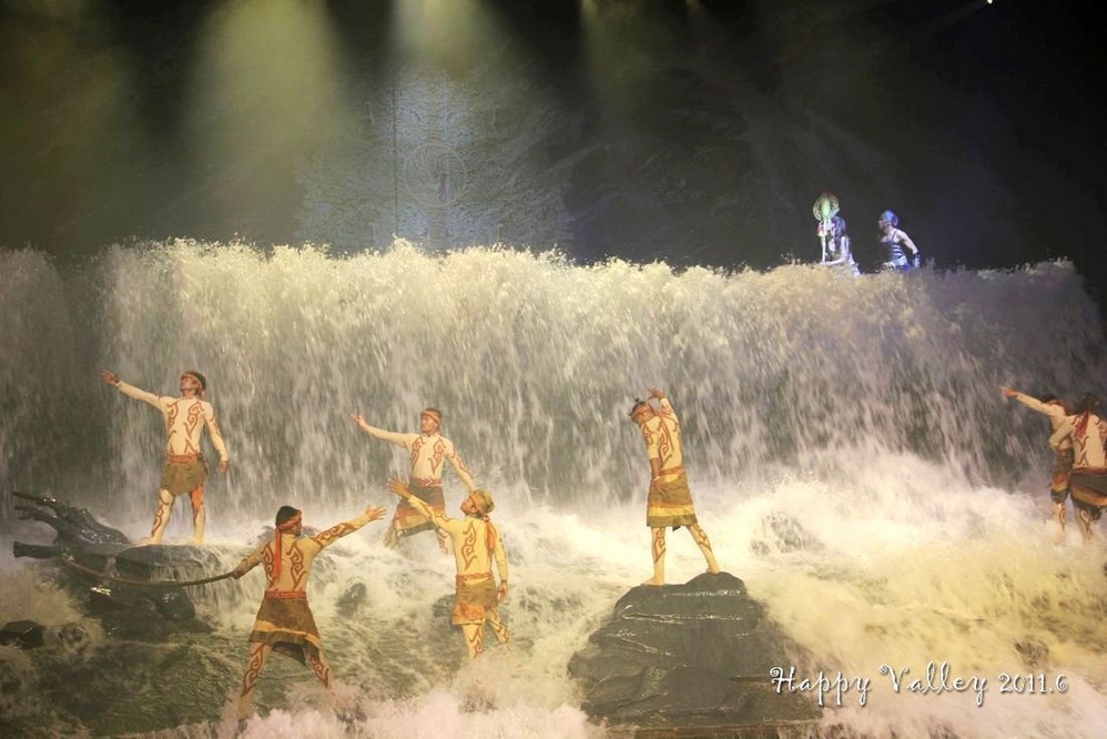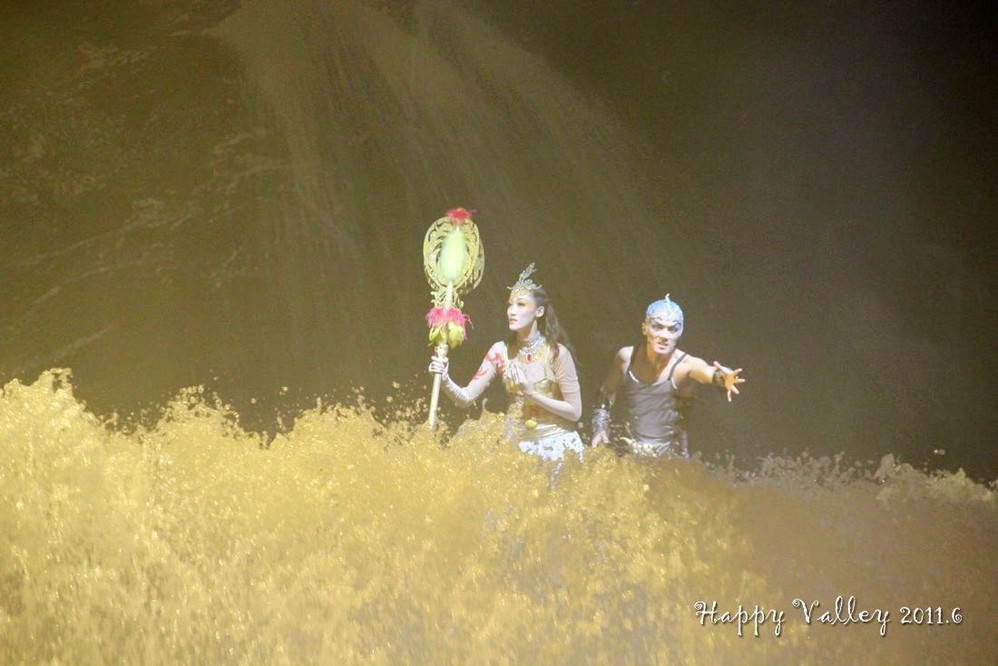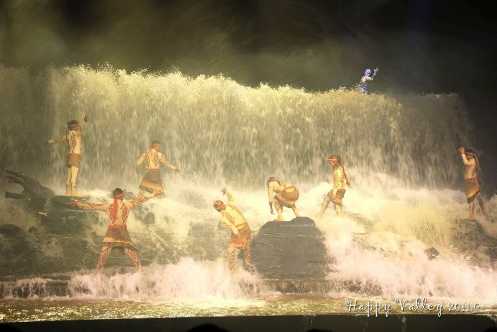 演出很好看,服装华丽,那真实的洪水的场面也让人如身临。整场演出是不允许照相、摄影的,我悄悄的想照几张留做纪念,还是被工作人员发现了,远远的用“小绿灯”照着你,提醒你不要照。