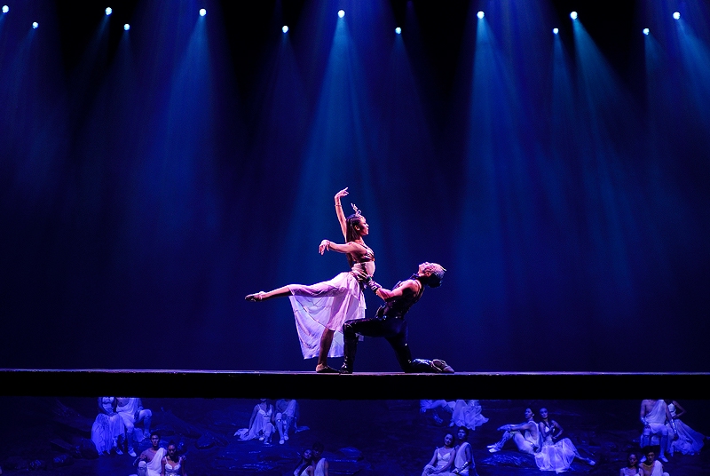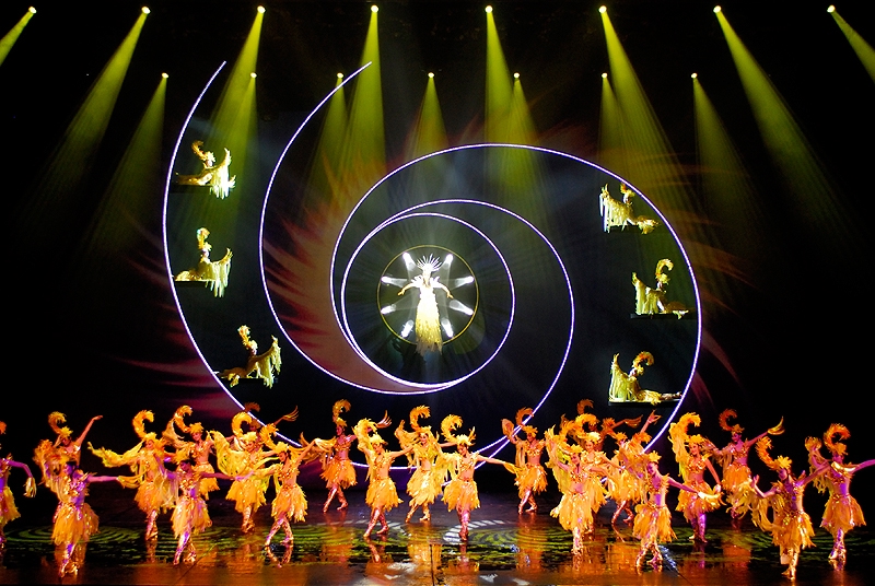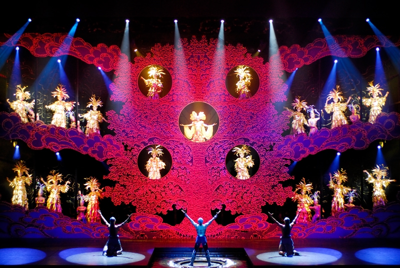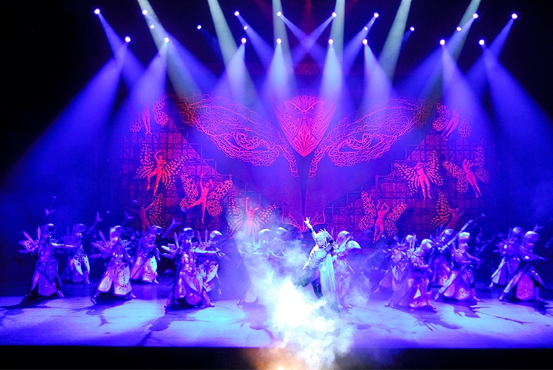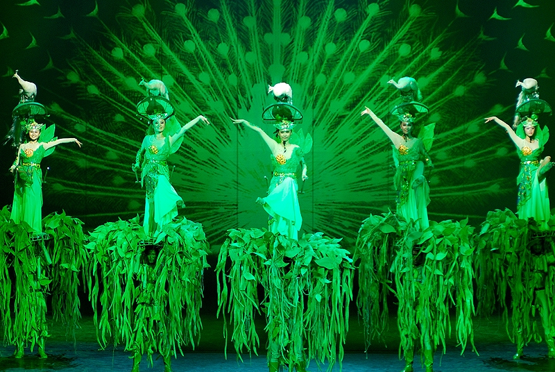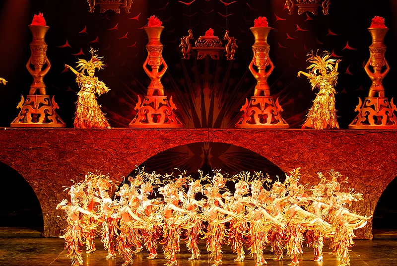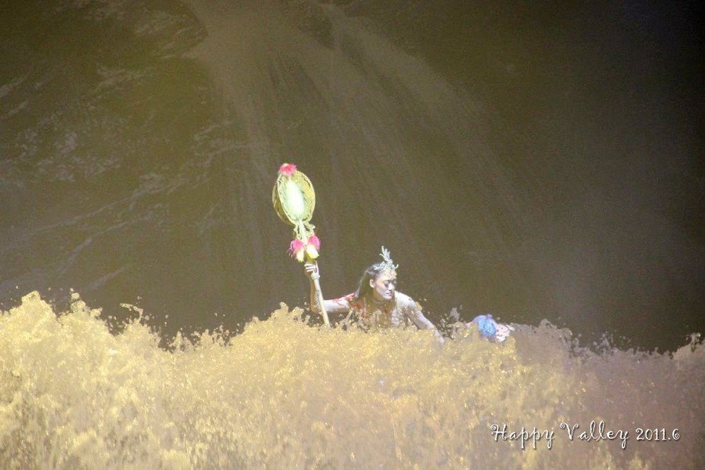 演出很好看,服装华丽,那真实的洪水的场面也让人如身临。整场演出是不允许照相、摄影的,我悄悄的想照几张留做纪念,还是被工作人员发现了,远远的用“小绿灯”照着你,提醒你不要照。