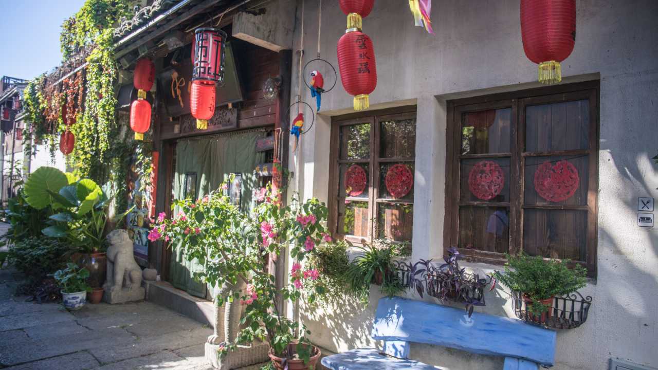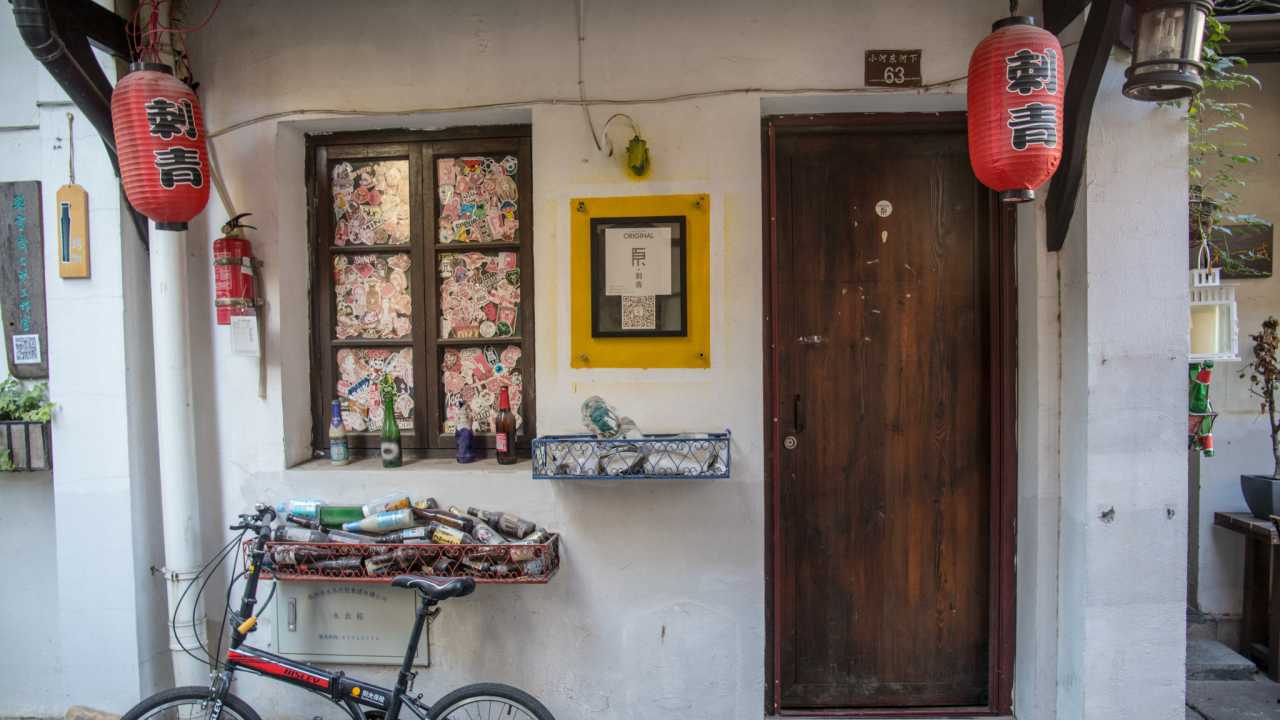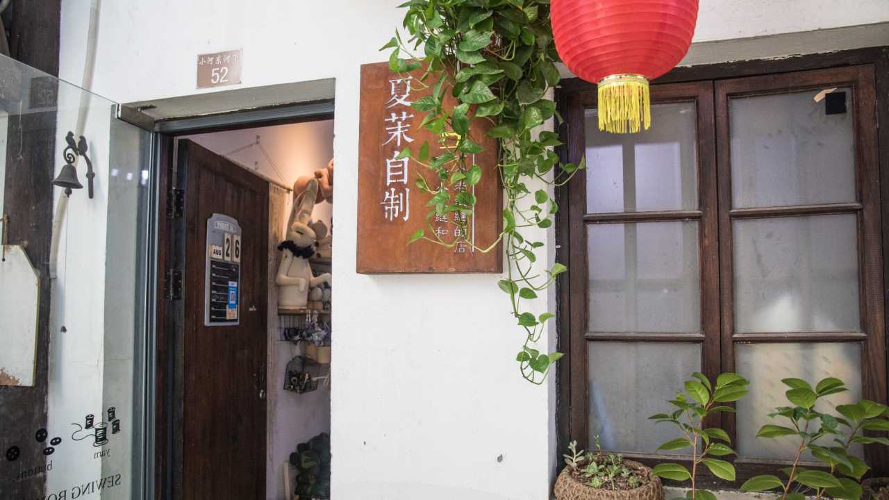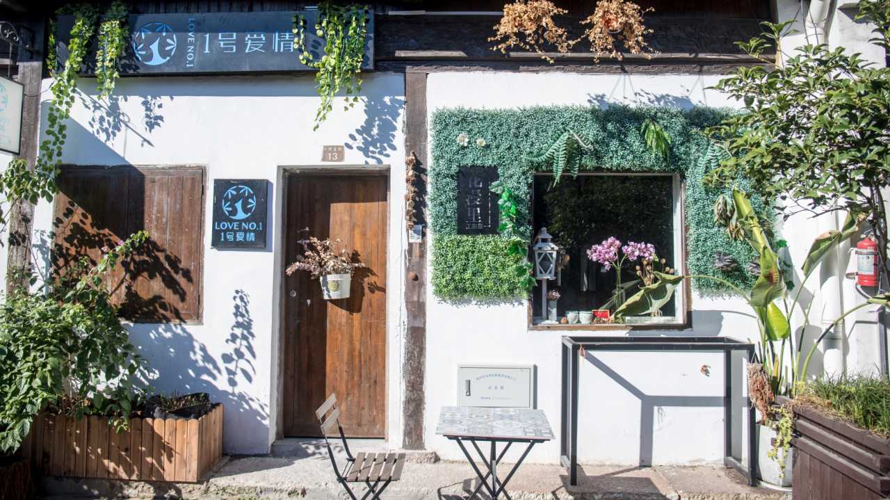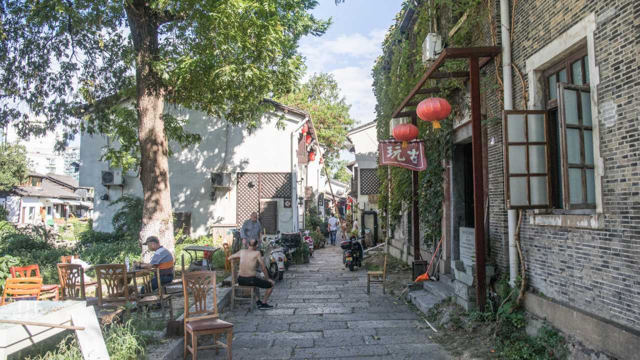 街的两边部分是有人住着的老宅,有些已经改头换面,变成一些小生意的经营场所,咖啡、酒吧、麻将馆、手工店、古筝培训班……