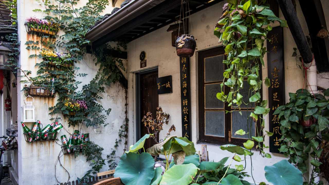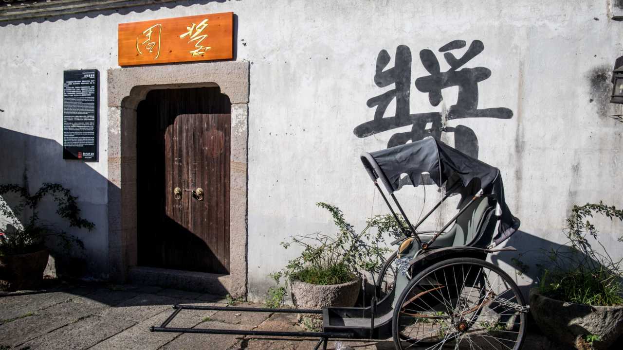 这里还隐藏着一个富有年代感的酱园-方增昌酱园,有点泛绿色、斑驳的墙壁、门口老式黄包车、墙上大大的酱字,似乎在诉说着这条街道悠长的历史……据说白天的时候酱园开放参观,但是我们去的有点早还没有开门。