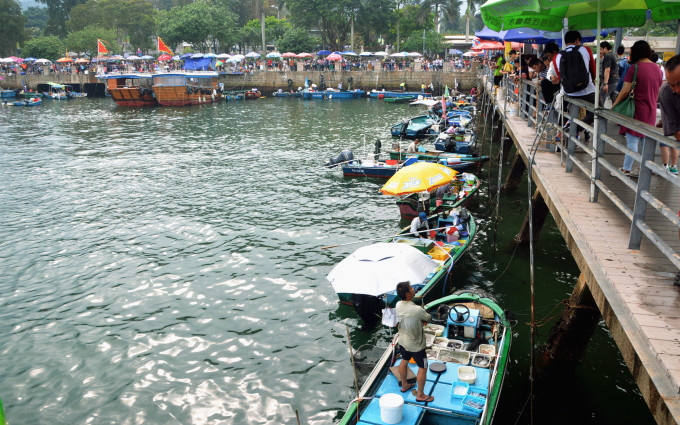 海堤栈桥边的卖鱼船。