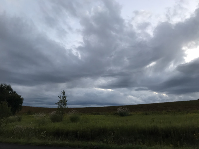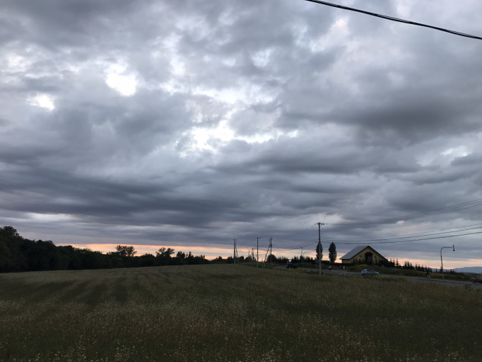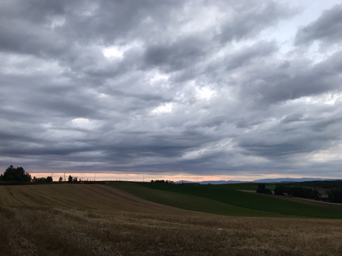 傍晚到美瑛,徒步了一段拼布之路,晚霞中的田野很美,走到Ken & Mary Tree.
