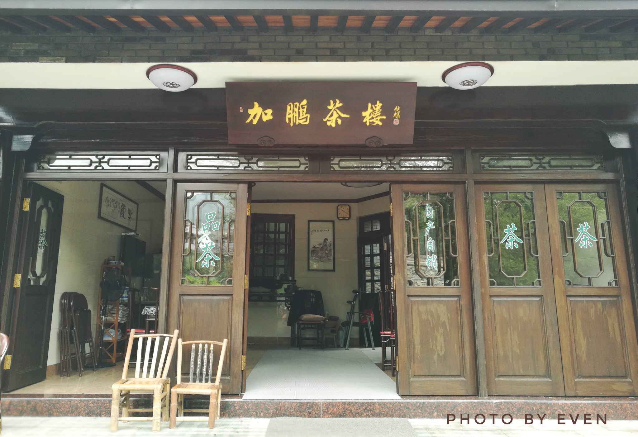 龙井村毕竟也算是个景点,所以商业氛围显露无遗,都是各自的自家小院儿挂上个牌子,众多的茶馆,农家菜之类的。