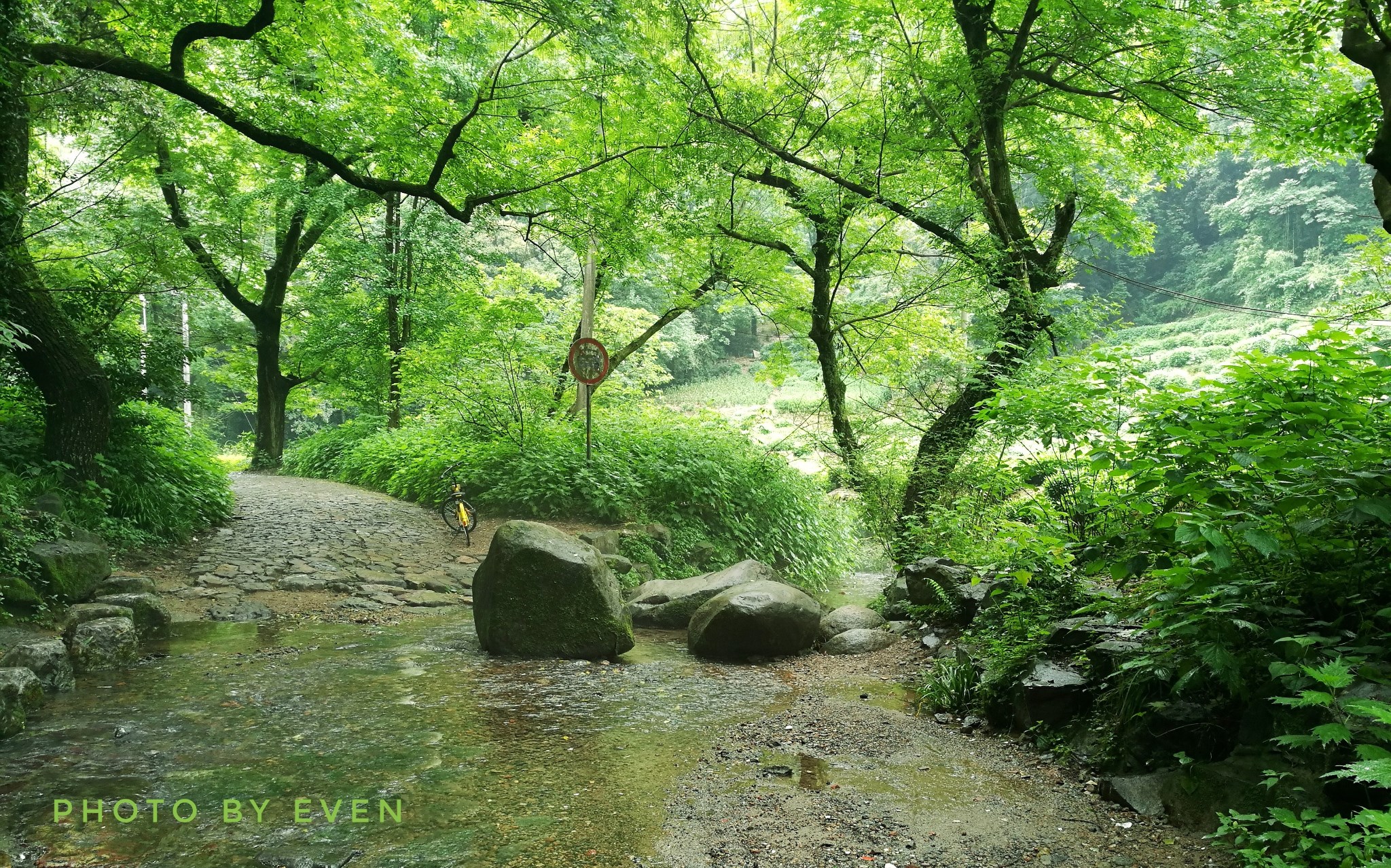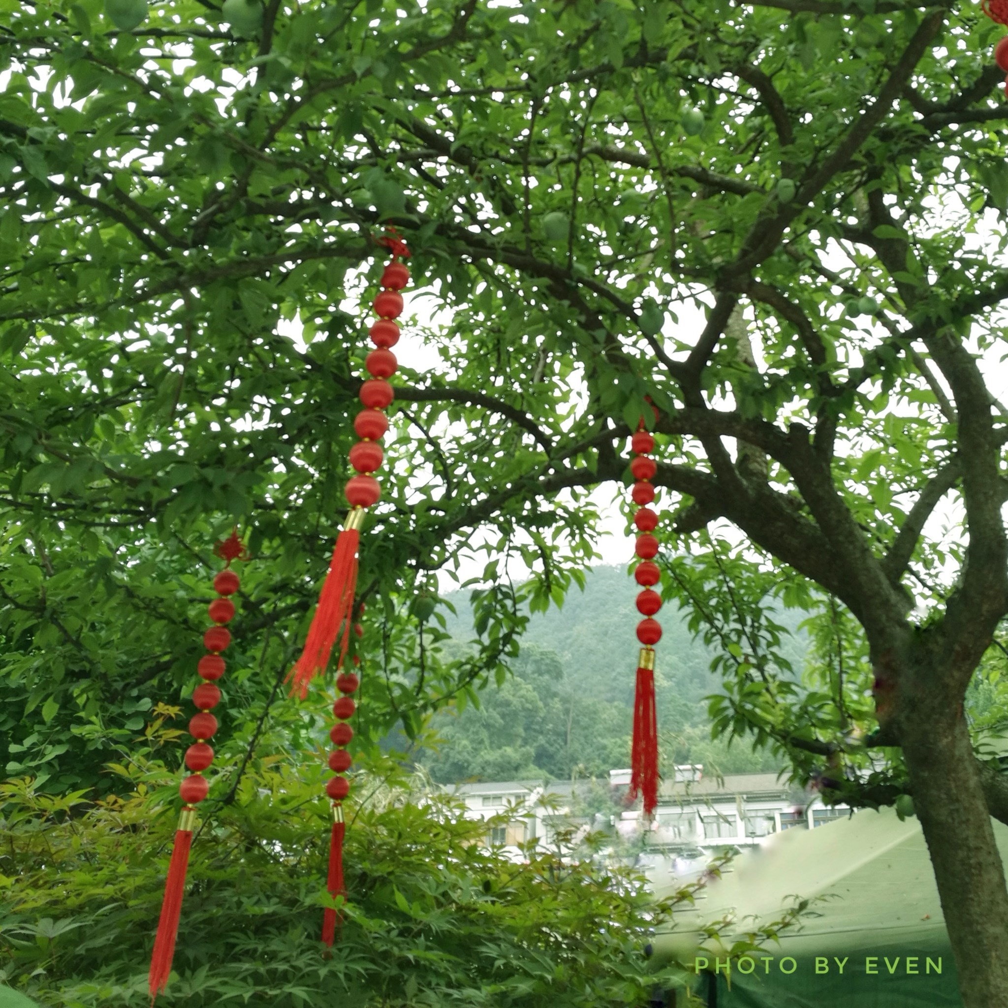 我们终究还是幸运的,饭后雨止,也终于感觉到了一丝雨后的清凉。地面湿漉漉的,绿色倒是更浓郁了。