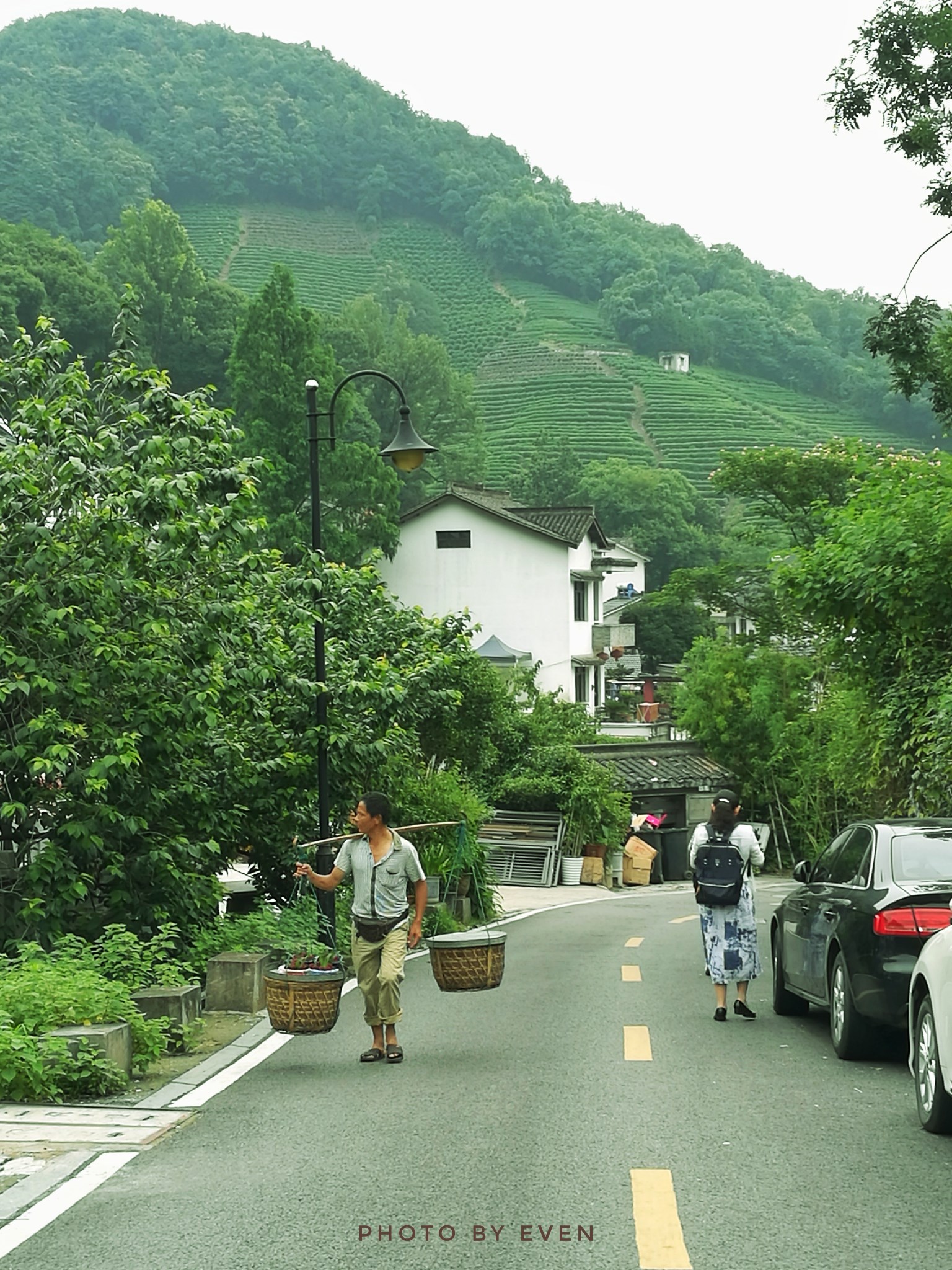要说龙井村的风景有多美,还真不是,就简简单单一乡间小村,而其有别于其他的特别之处则莫过于随处可见的茶山与满眼的绿色,看起来很是生态。