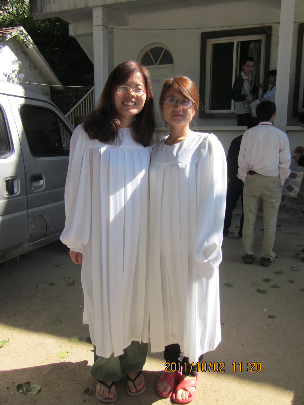 我的姊妹受洗,因为我要们要下水,所以穿拖鞋了