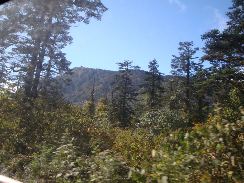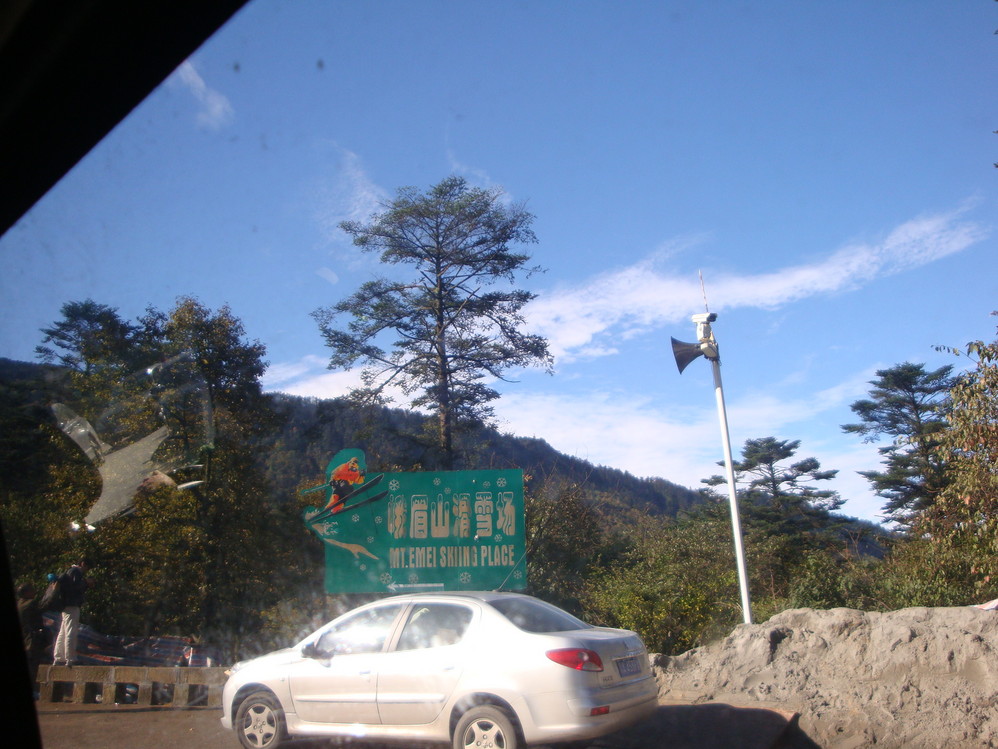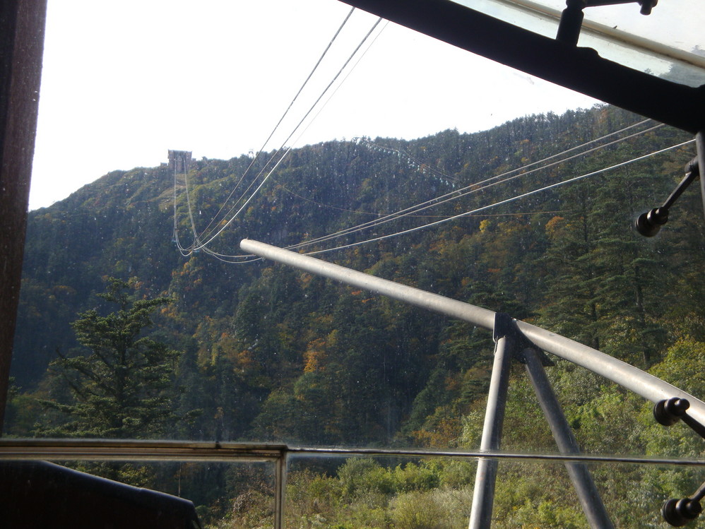 汽车上抓拍远处的大索道和小缆车直上金顶。