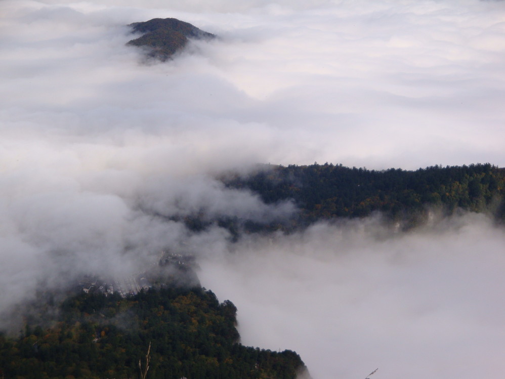 乘坐索道登顶的过程中,用摄像进行记录,但不会网上发。就发几张登顶后照的云海。