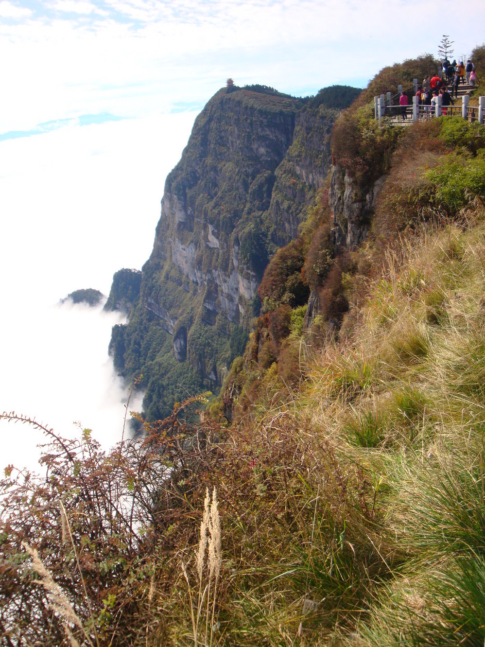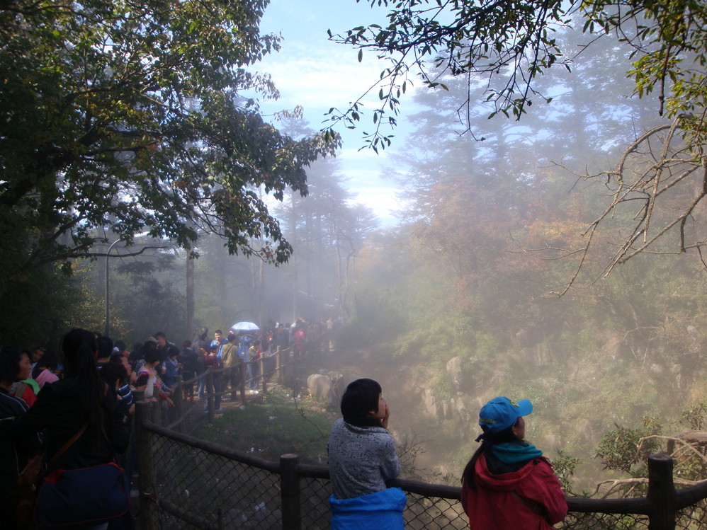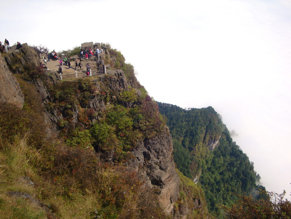 看见彩虹没?就在观猴区,还看见猴子了,可惜没照下来。不过,都亲眼目睹了。就在这个悬崖边上,一只大猴王带七只小猴子跳来跳去,被图中的绿背心防护人员驱赶着,不准上来。
