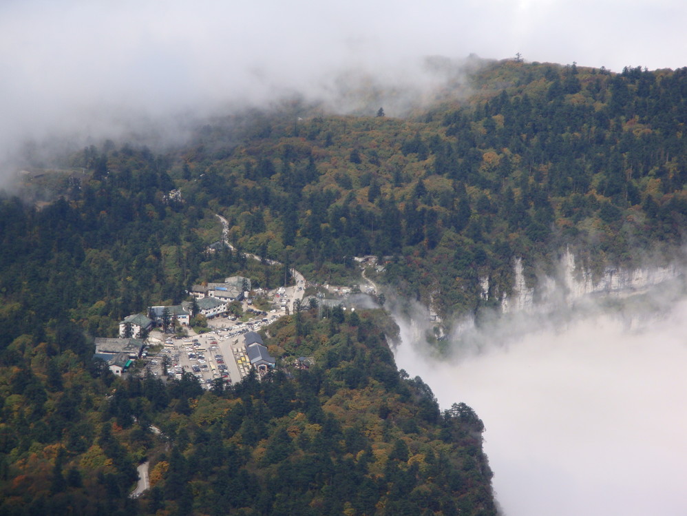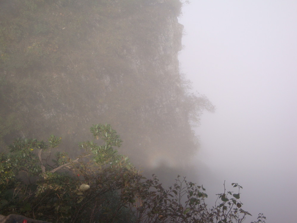 乘坐索道下山了。行进在接引殿至雷洞坪间的观猴区,天气变化,雨雾、阳光是出佛光的最佳时刻。