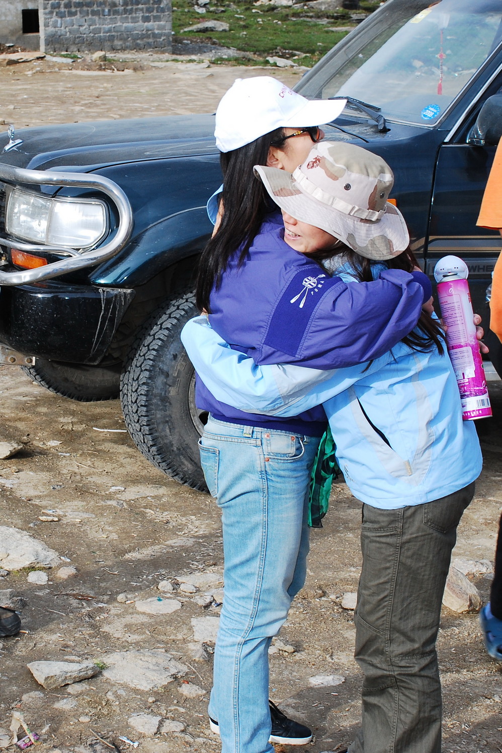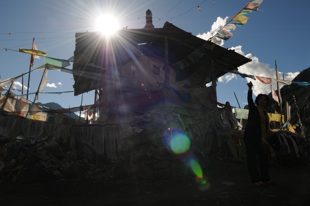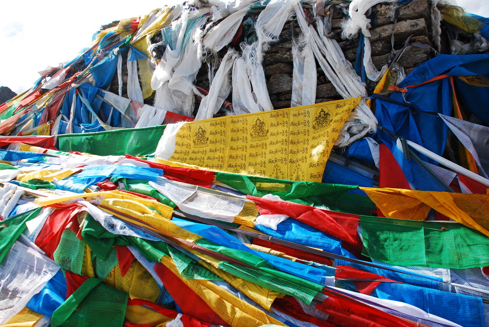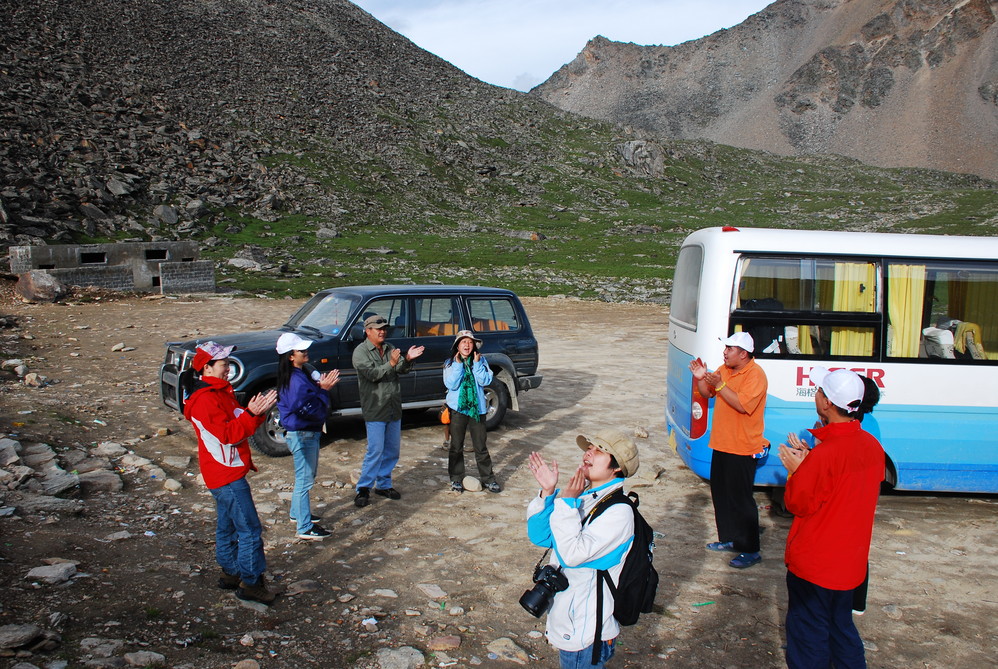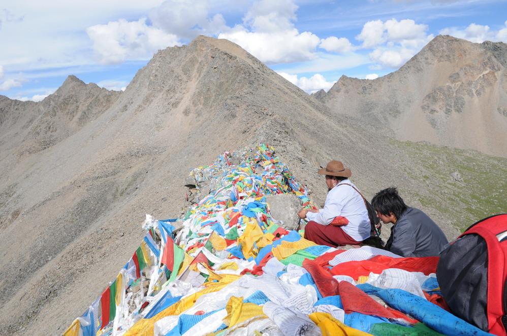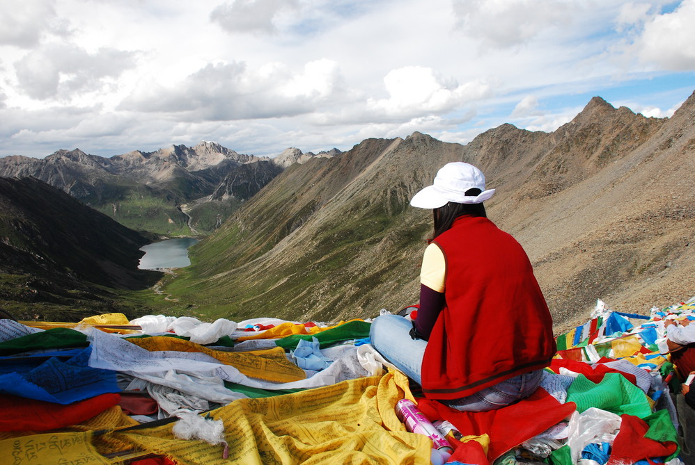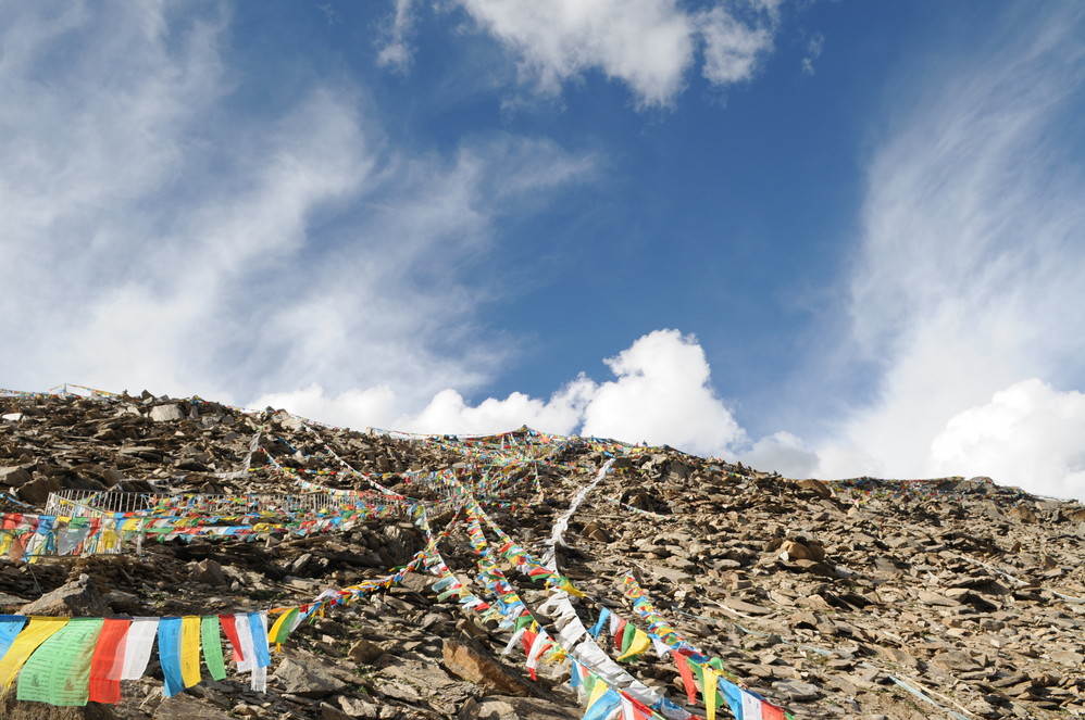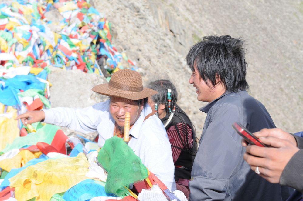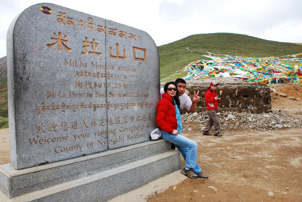 美女和野兽同时抵达5013米的米拉山口 ,下一张是米拉山口 的经幡