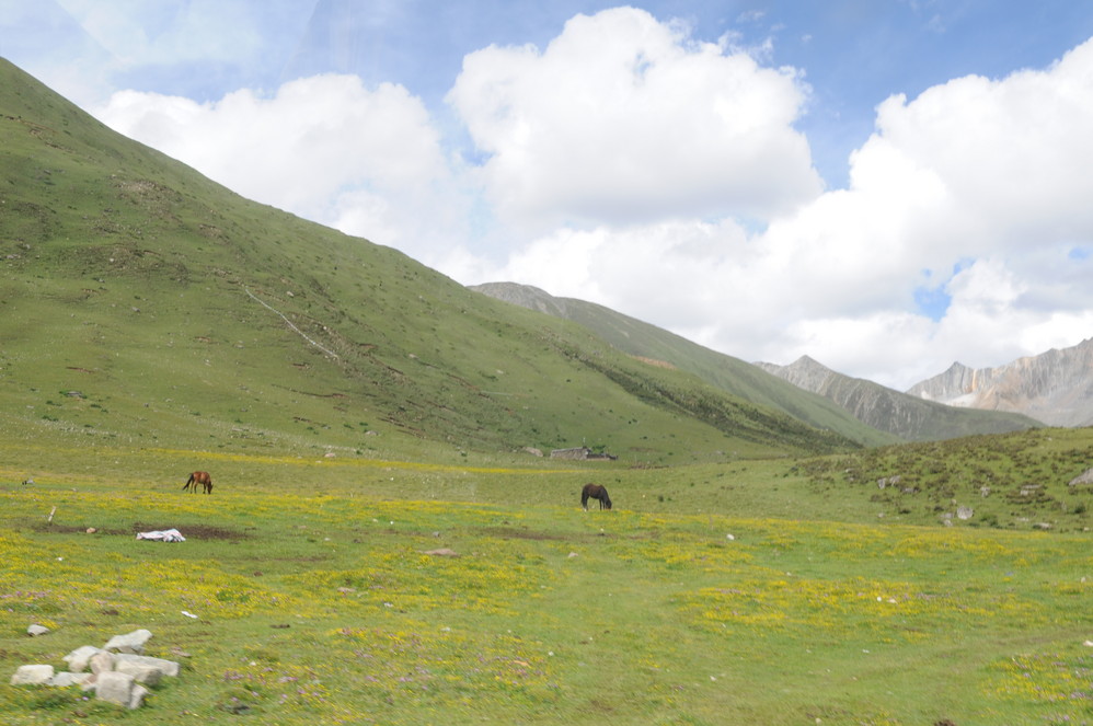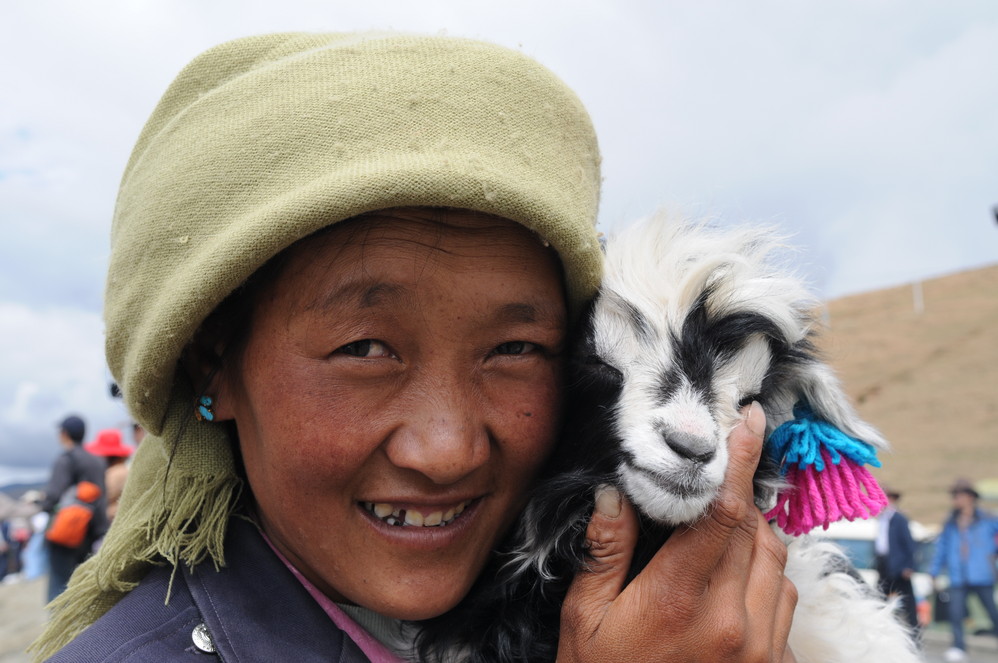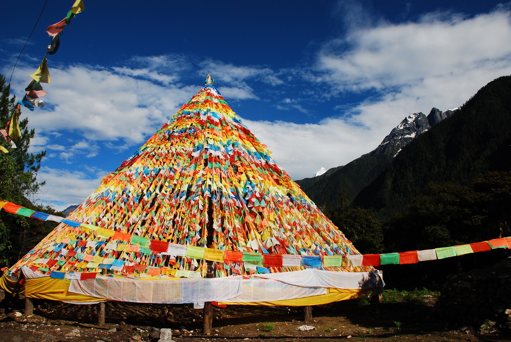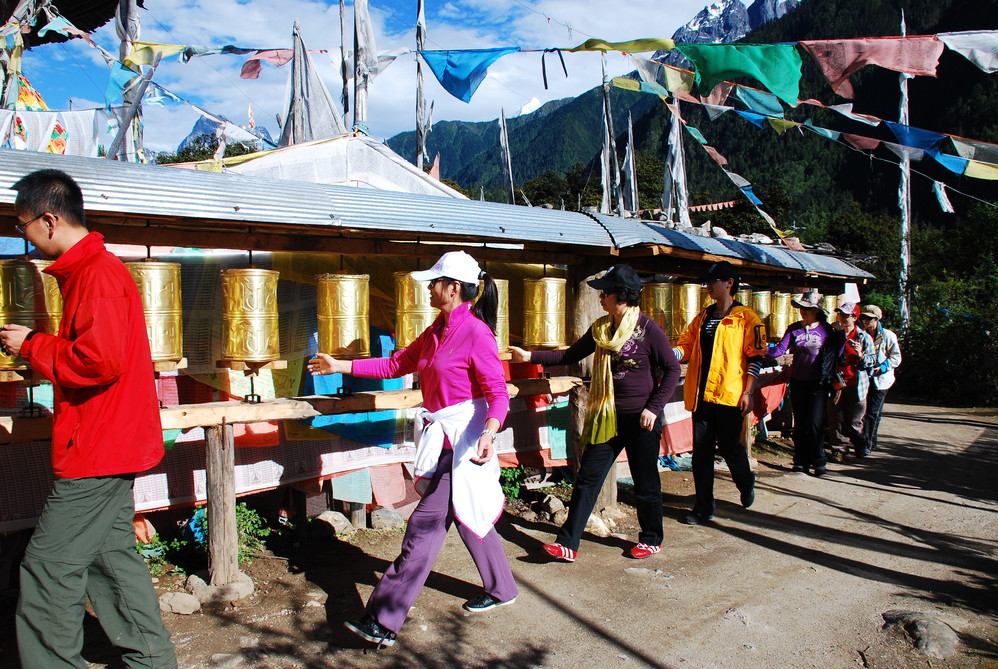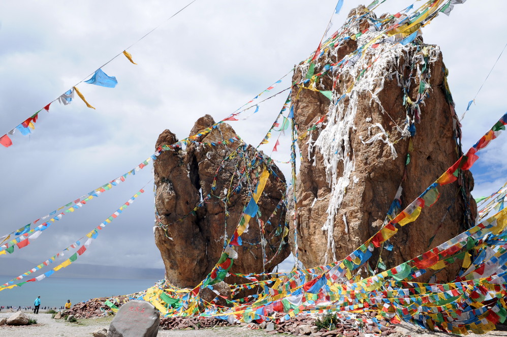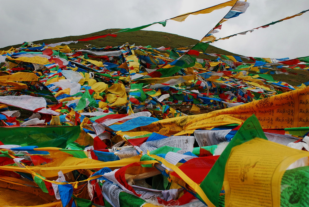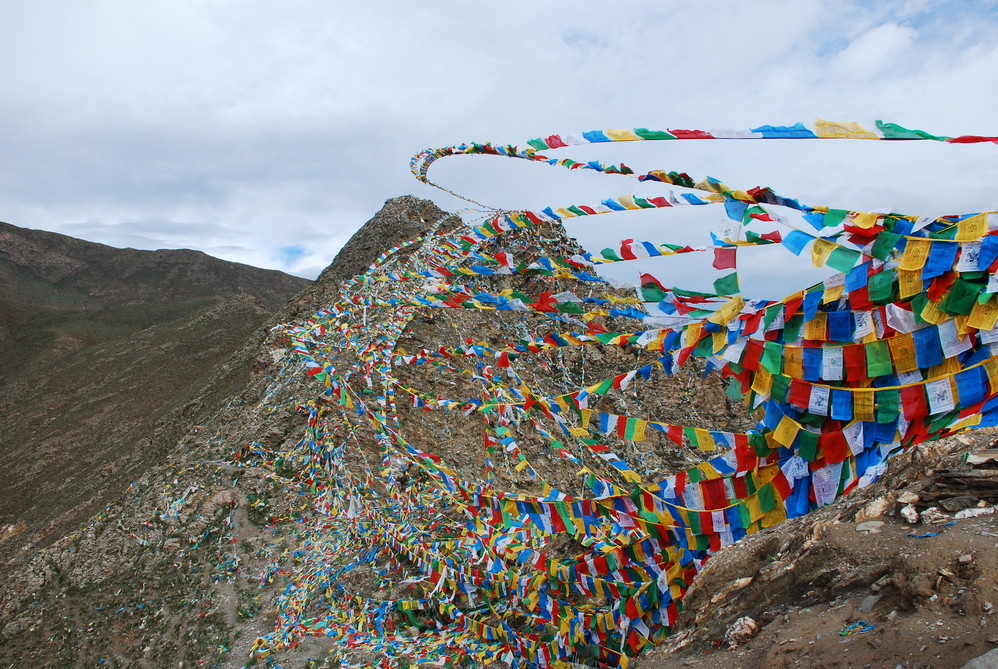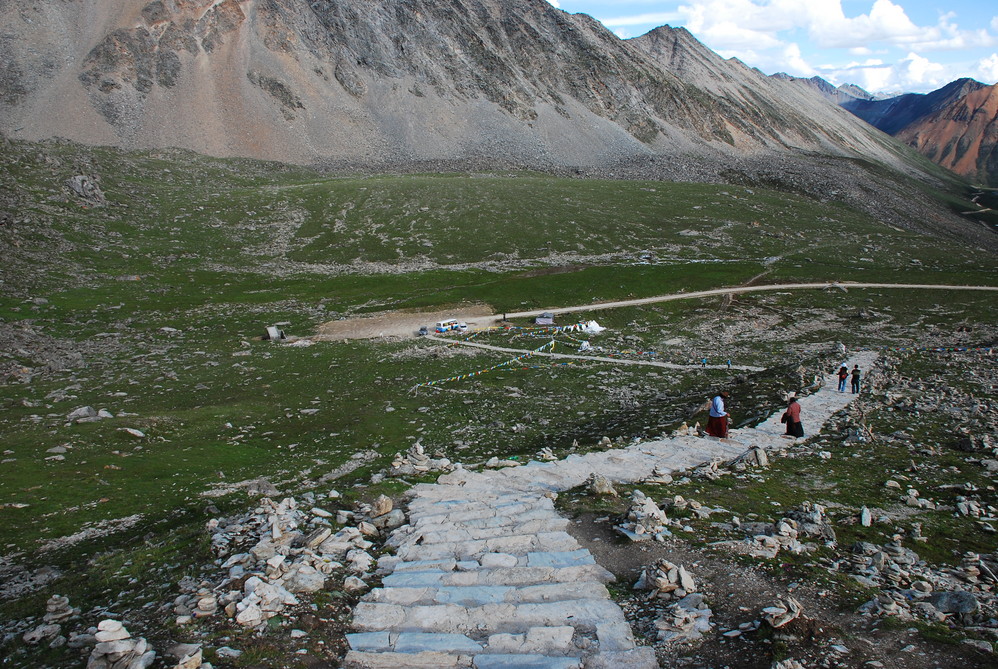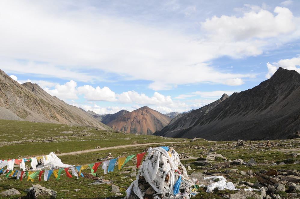 美女和野兽同时抵达5013米的米拉山口 ,下一张是米拉山口 的经幡