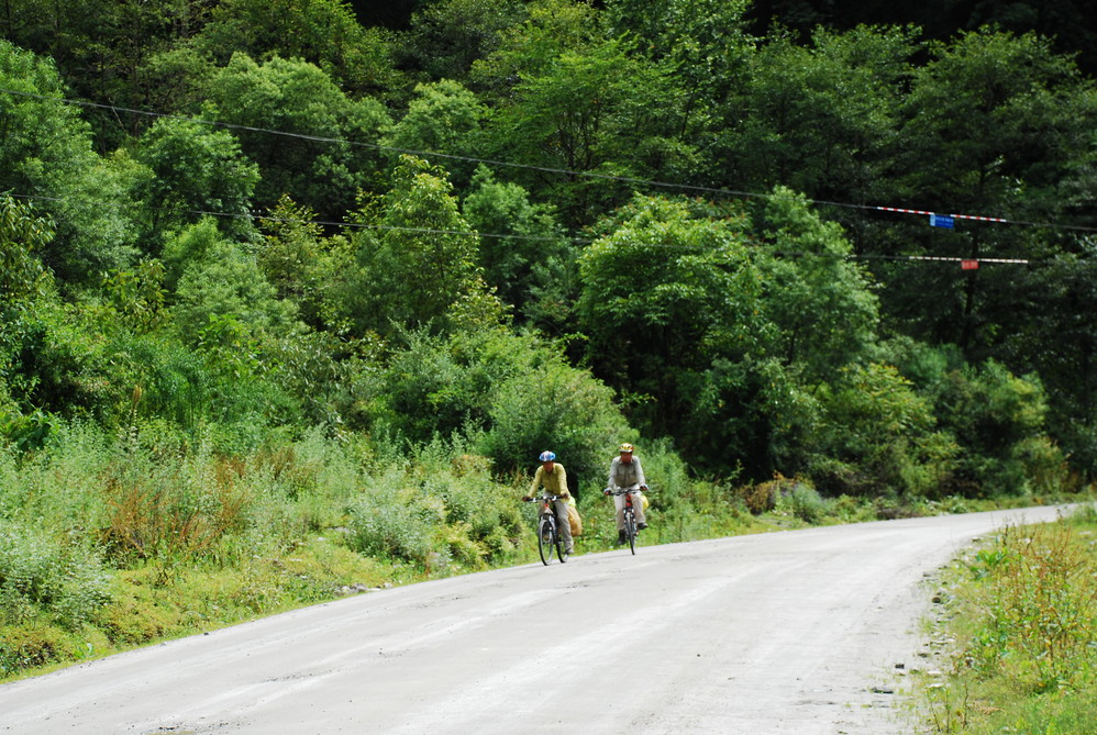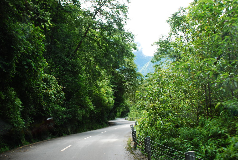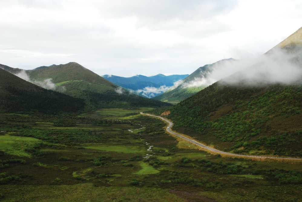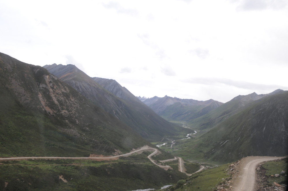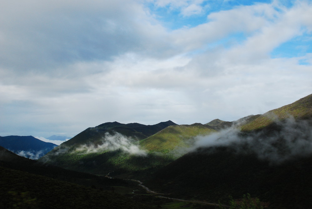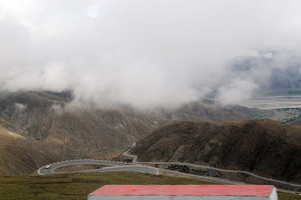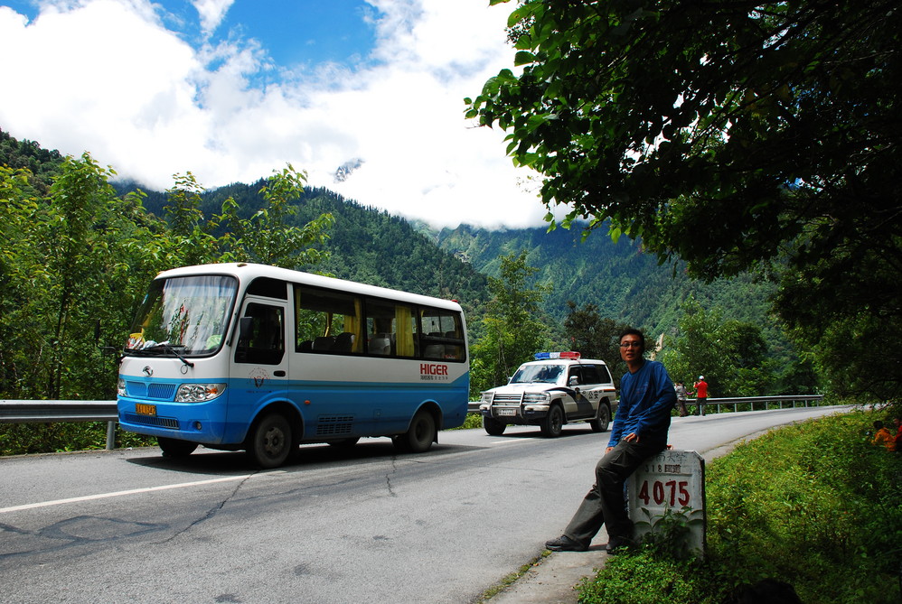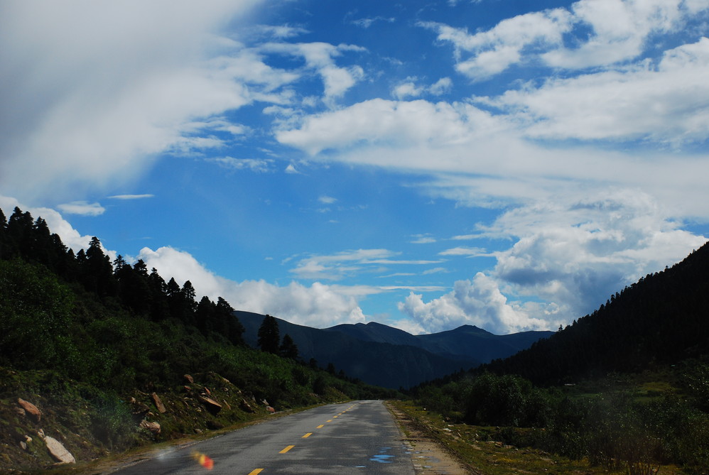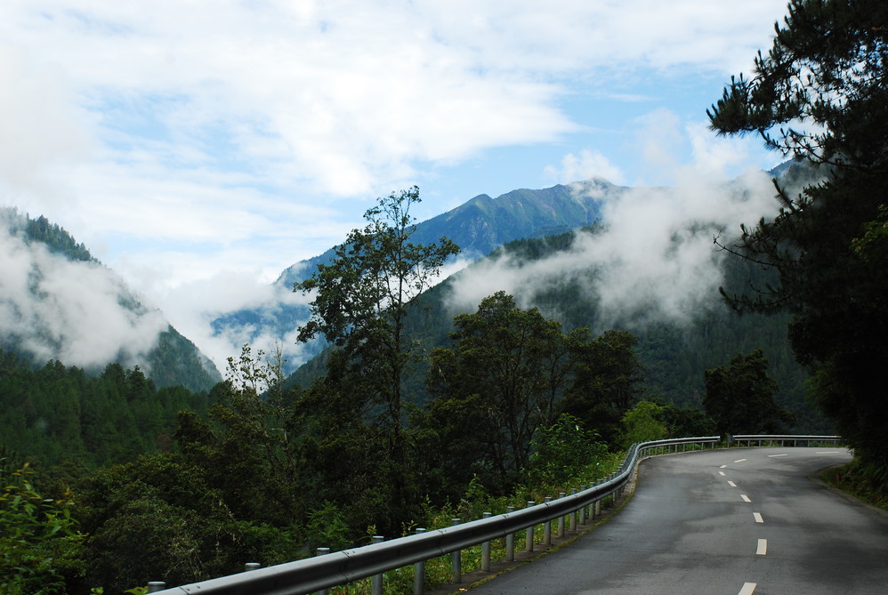 一行人在这十天中或多或少均有些高原反应,我就在米拉山口 上蹿下跳的拍了会儿照,上车后就反应了,就在下面这条路上吐的,嘿嘿