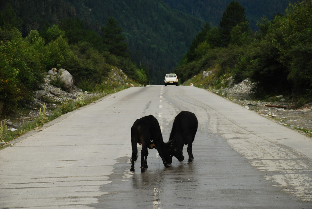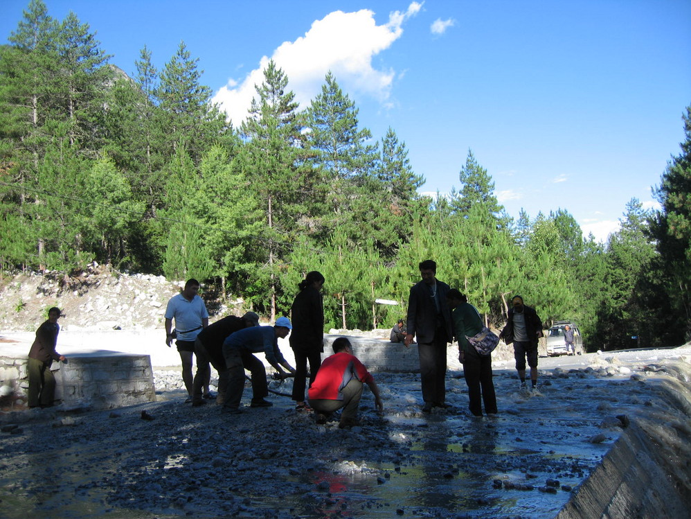 错车经常会堵,所以大家没事就会下车。这段正在维修中