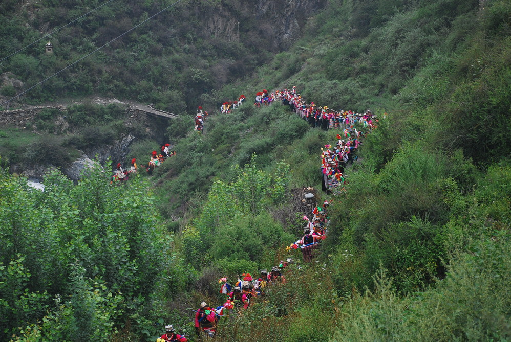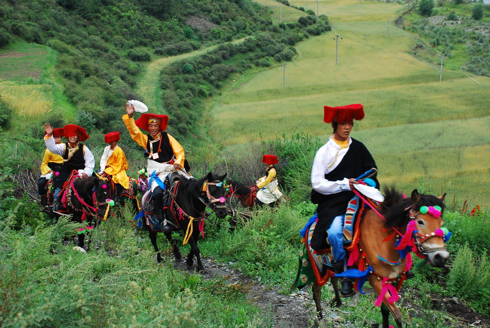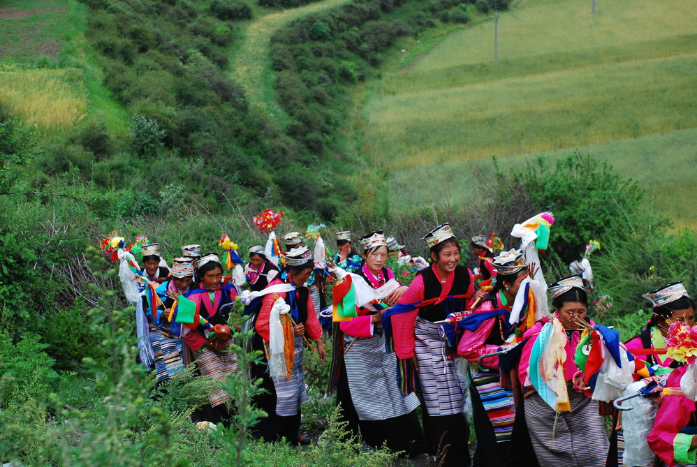 赶上丰收的节日,人们都穿着节日的盛装去庆祝