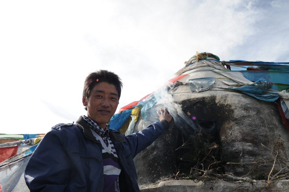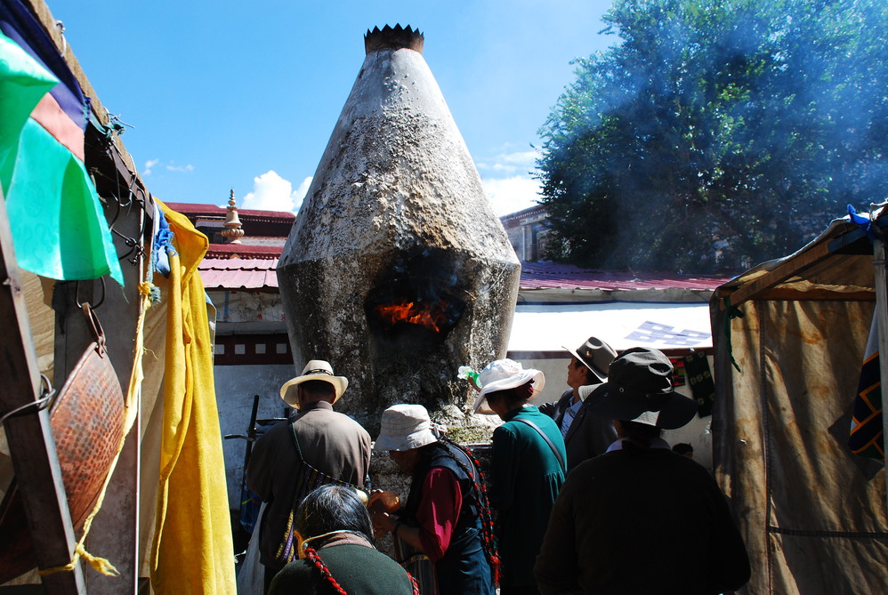 拉姆拉 措上的香炉,艾草、虔诚的信徒、纯净的笑容