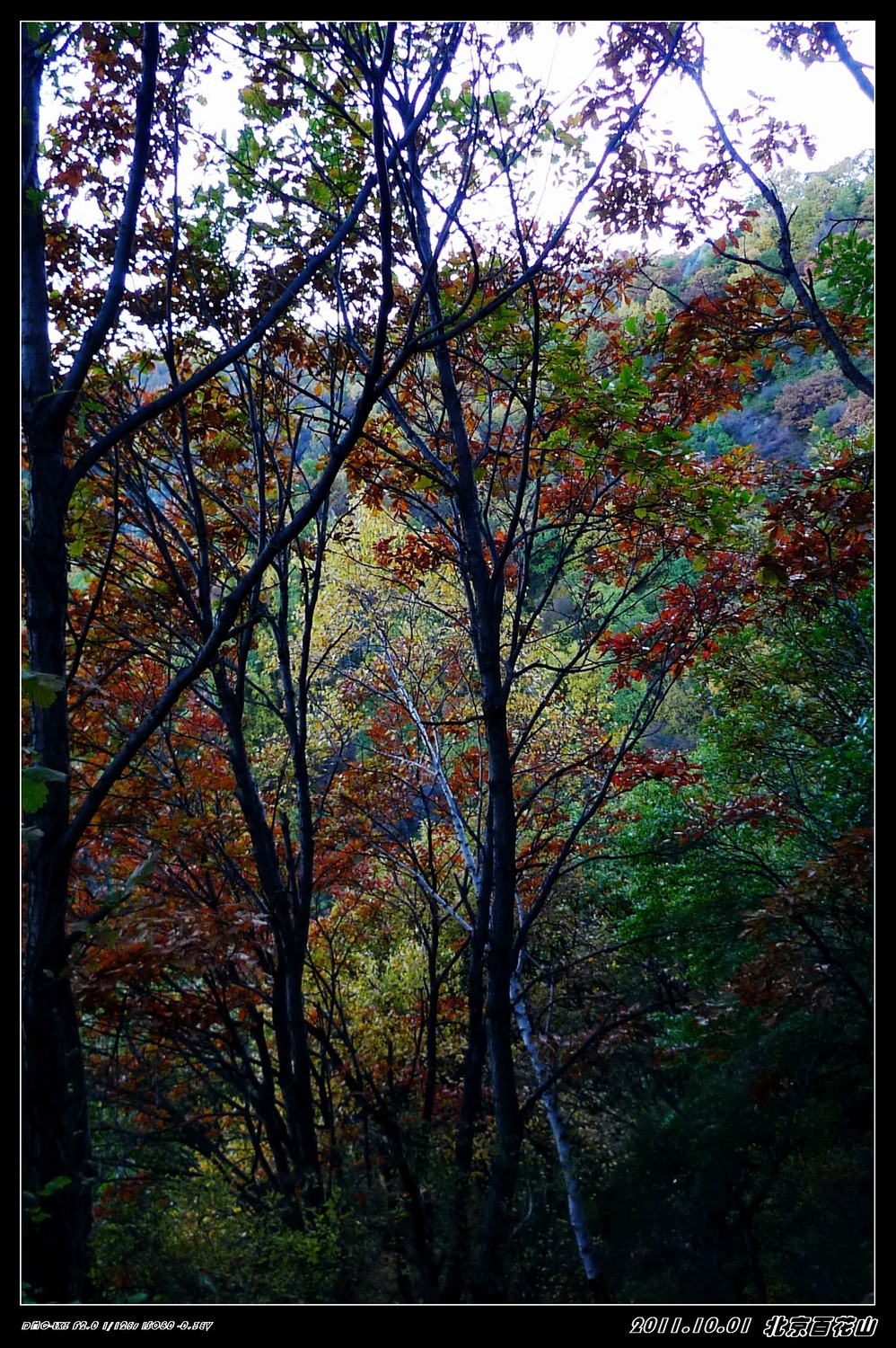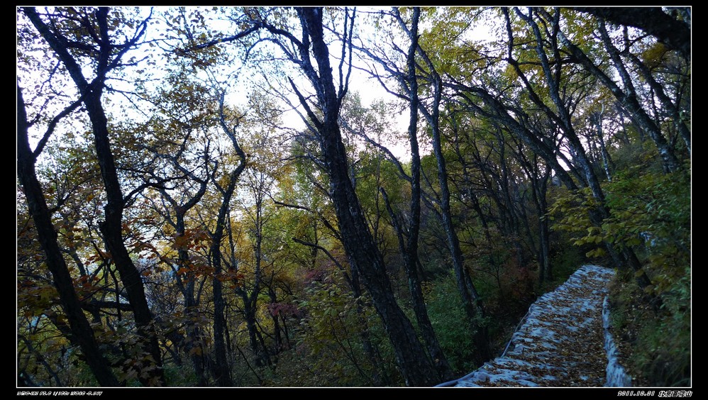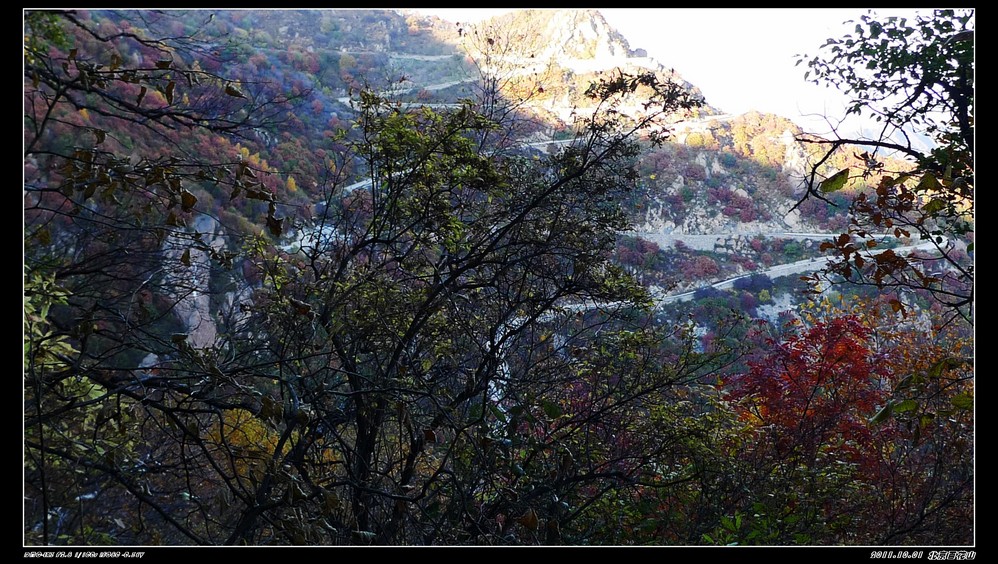 房山这边游人少得可怜,只有零零星星的几辆车,但意外发现从主峰山顶徒步走下来的那条小山道是个看红叶挺不错的地方,很有感觉,很美。