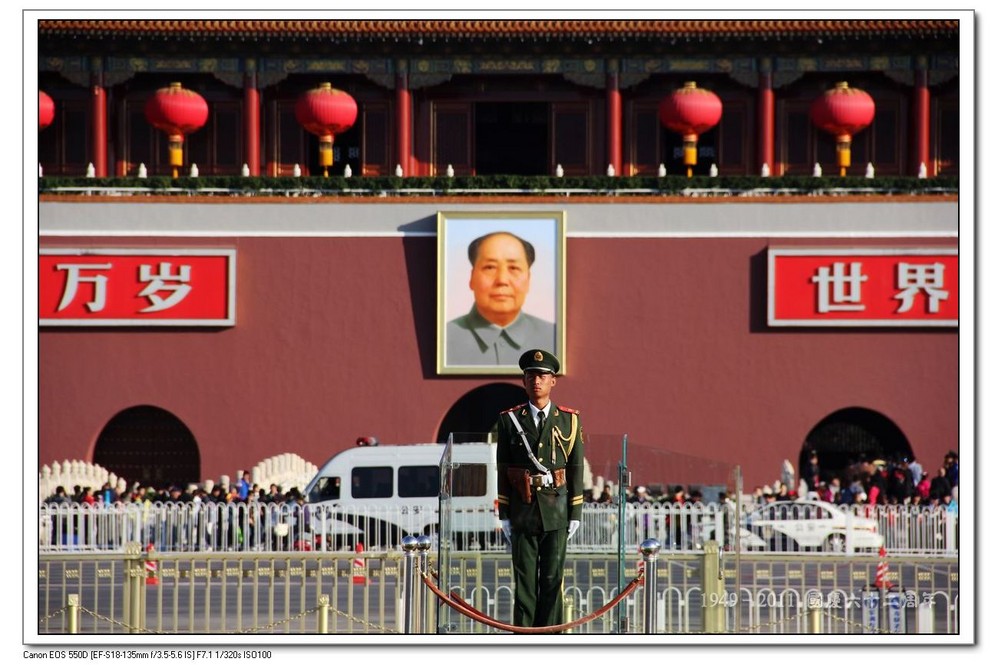 进入天安门广场了,有不少武警在站岗,还有巡逻的。小伙子们都长得又高又帅的。
