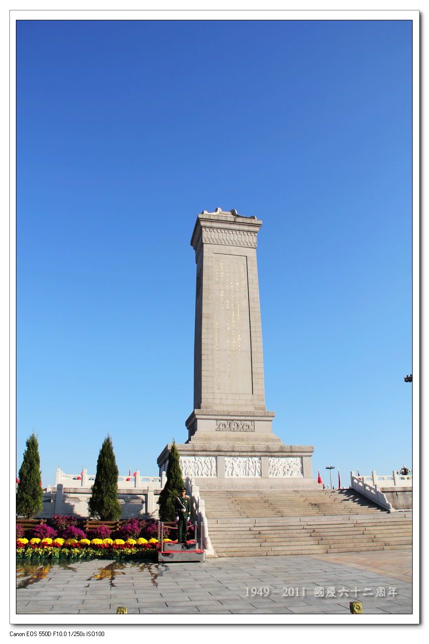 庄严的人民英雄纪念碑,在欢度国庆的时候,也不能忘记那些英烈们。