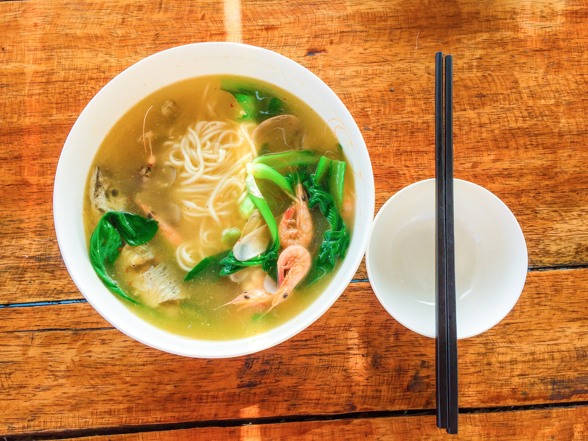阿姨做的海鲜面超级好吃,还要再来一份!