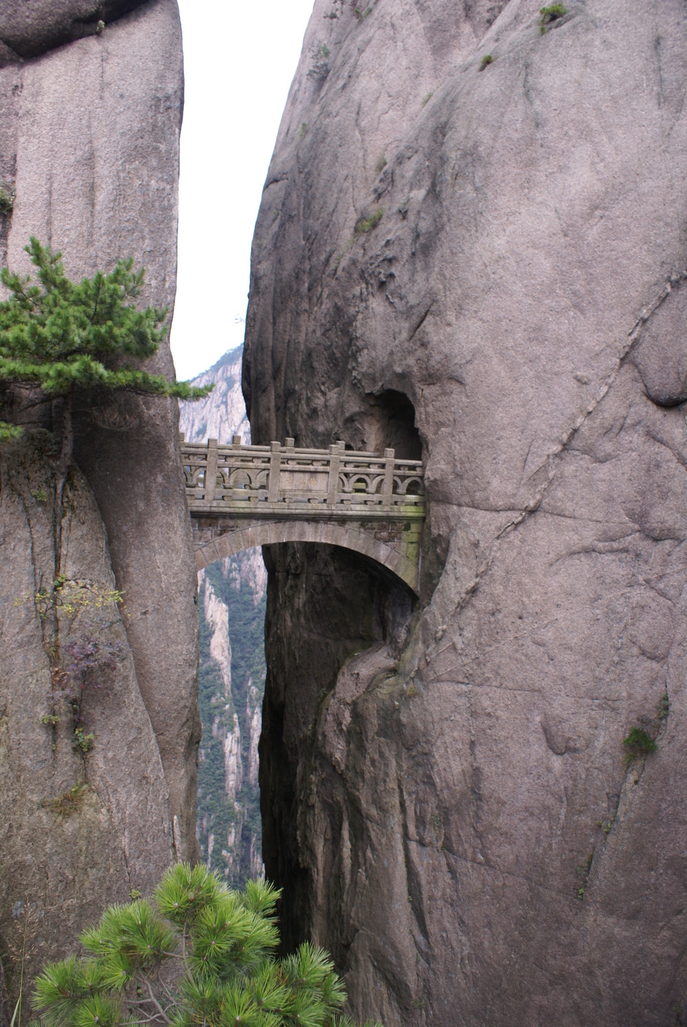 步仙桥, 另一侧是西海大峡谷, 现在封了, 希望 2015后再去, 因为天都峰也会开放, 这次哪也没去成, 奇石名松也没看到几处, 必定要再来一次的.