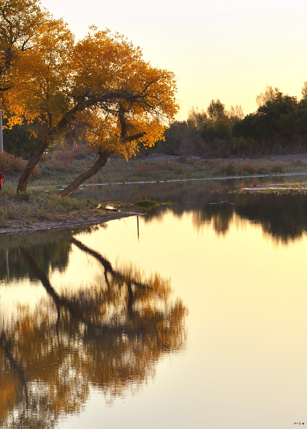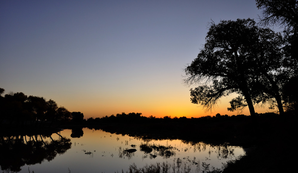 自驾车露营地附近就有大片的胡杨林,以及一条小河,风景很美,适合于看日出日落,没有那么多人头攒动;