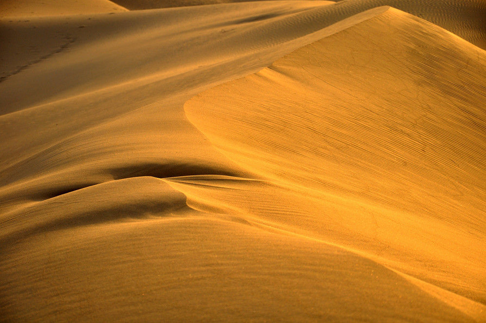 5、如果返程还是走银川 ,从左旗上银左高速后第一个出口是南寺/月亮湖,推荐要去。盘出高速后,左转奔月亮湖方向(有路标指示的),不用到月亮湖,只需要开20km左右,就能看到金色的沙漠,而不像八道桥的灰色沙漠。关键这里人很少,沙漠的形状保护的很好。从额济纳早一点出发,算好时间,还可以在6点半之前到达这里,拍沙漠落日。