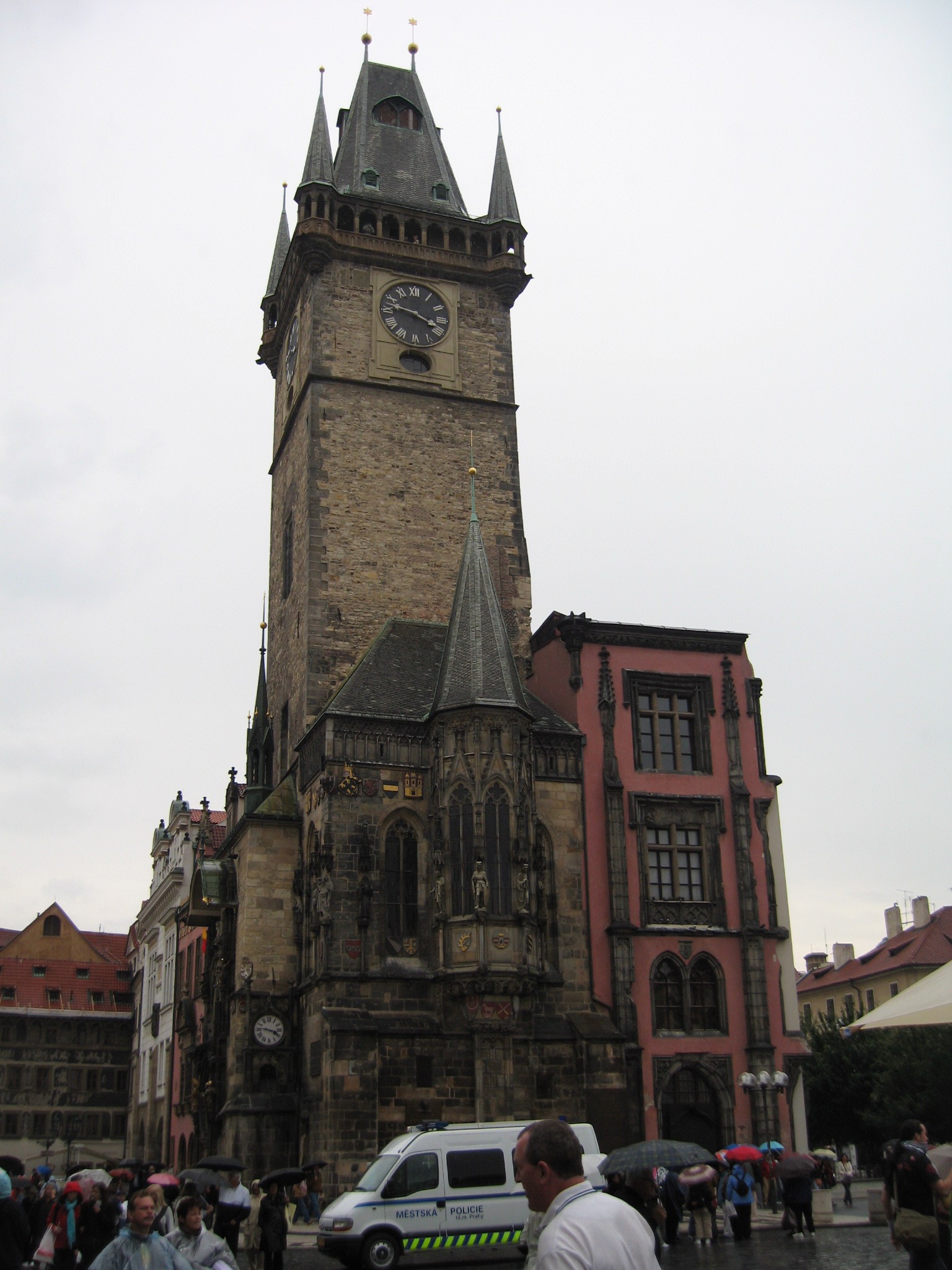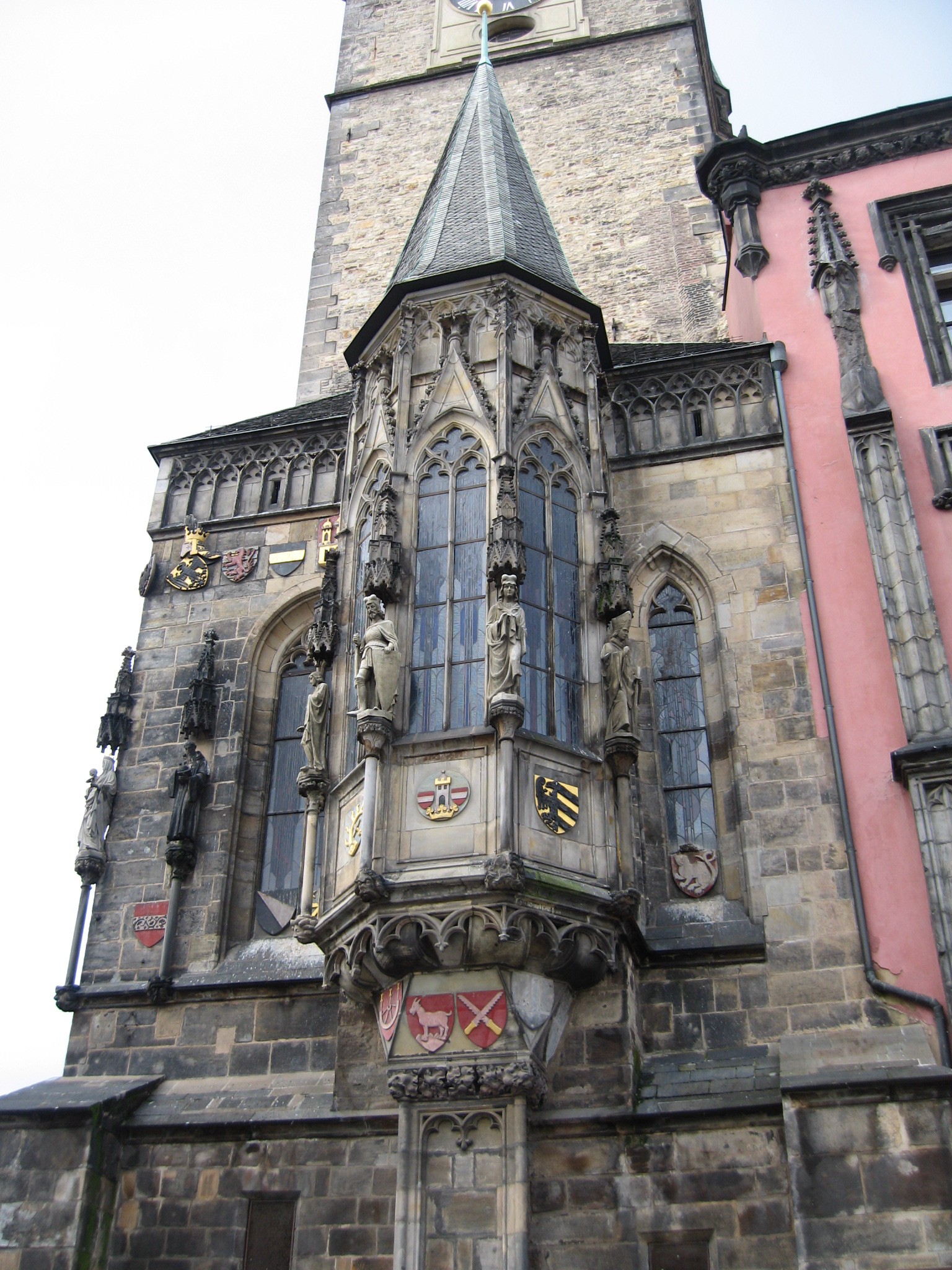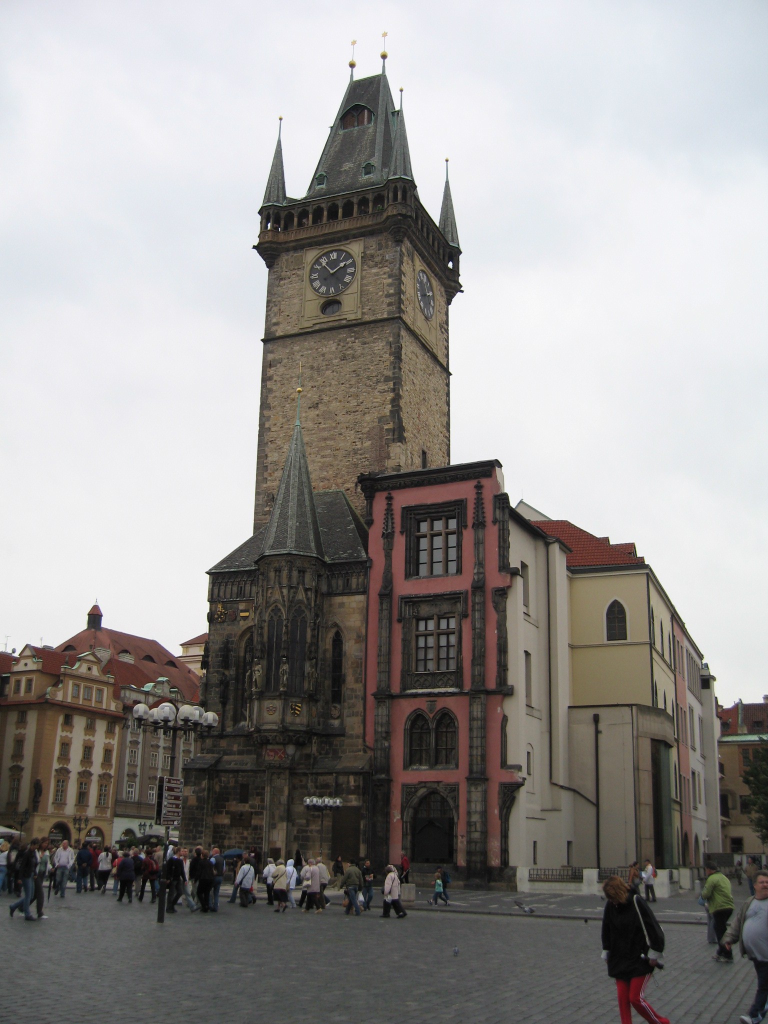 老市政厅在布拉格老城广场的北面,建于1338年,钟塔高70米,天文钟在其外墙上。二战期间被毁,战后重建的。钟塔可以坐电梯上去,在顶上俯瞰整个城区。