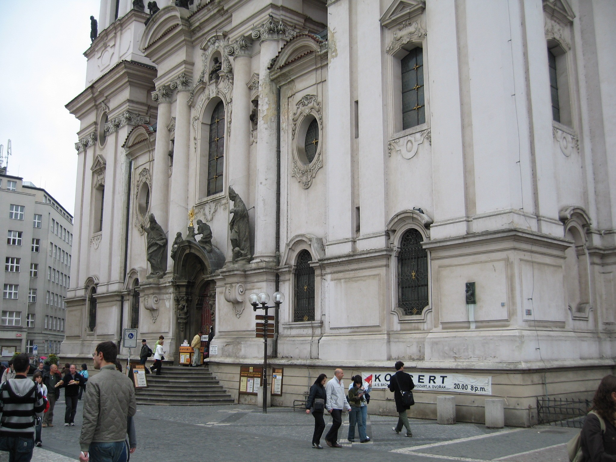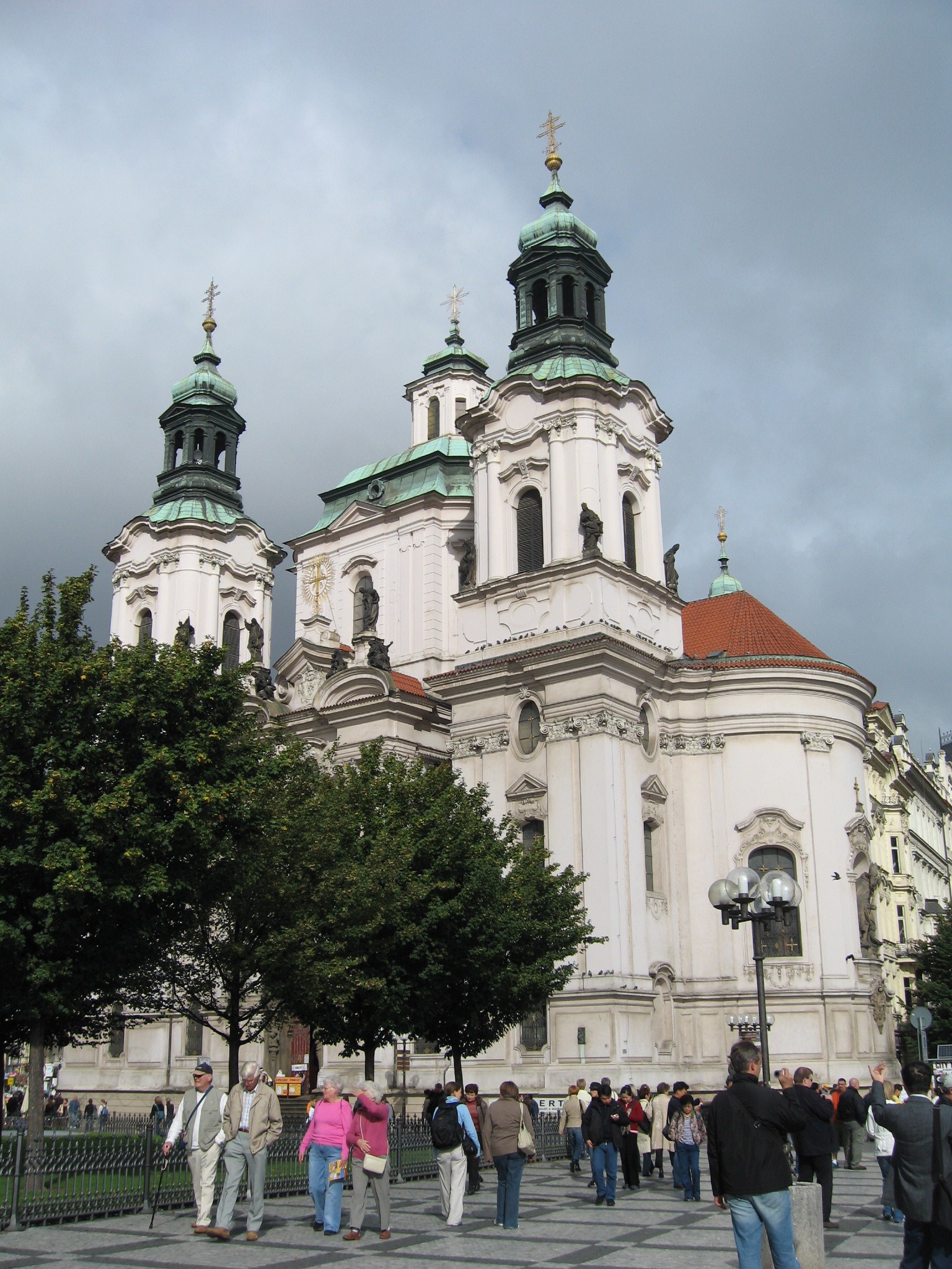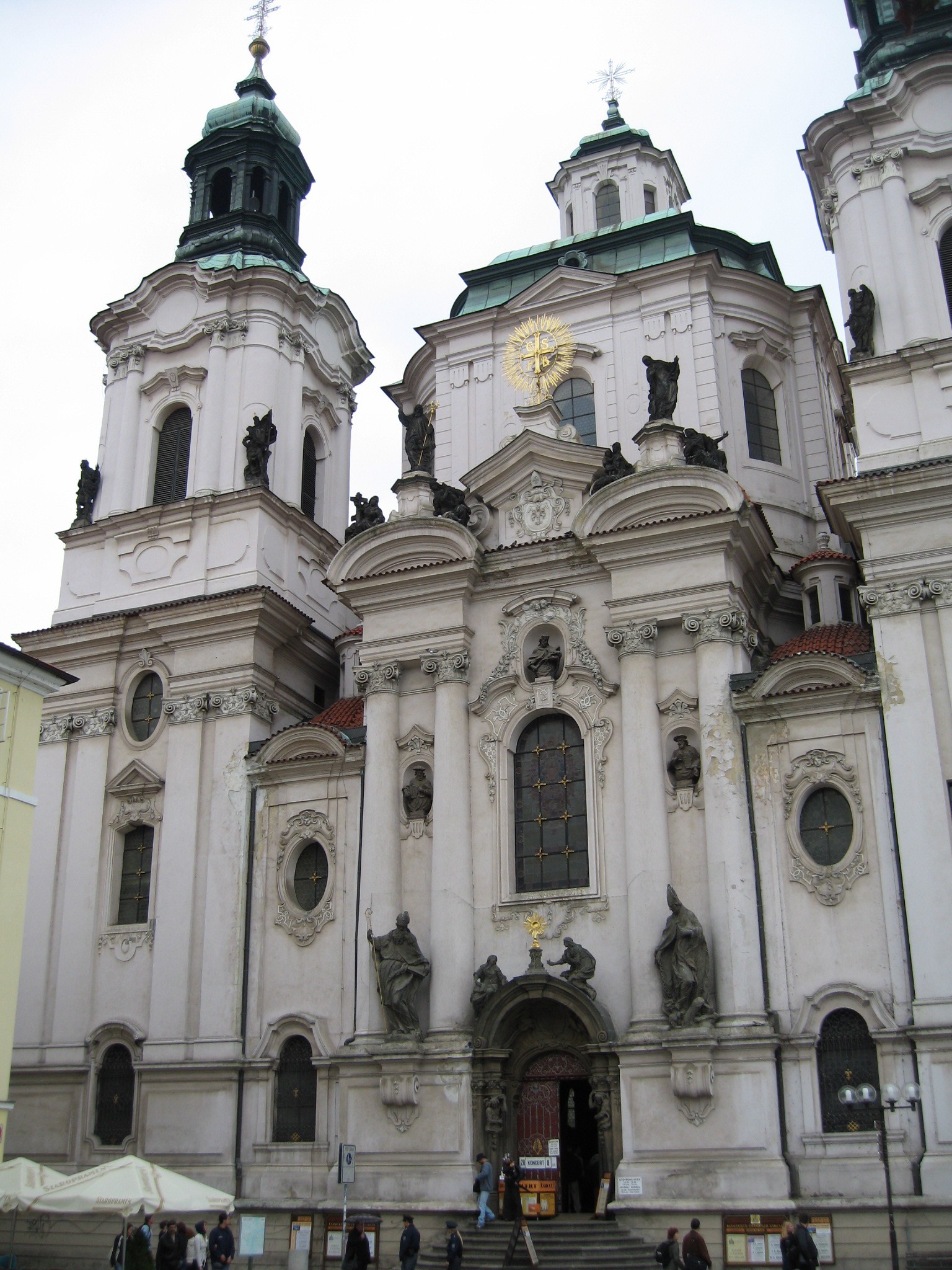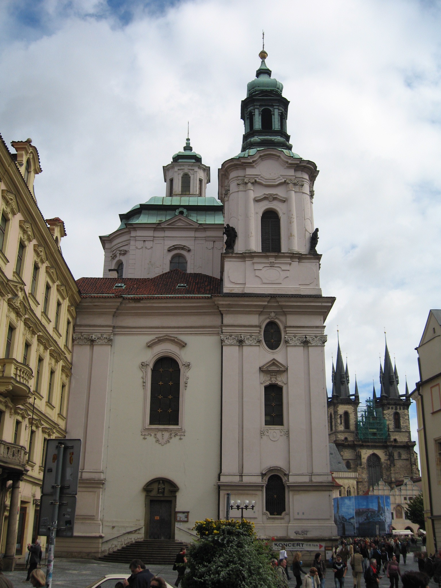 圣尼古拉教堂(老城广场)在布拉格老城广场,胡斯派教堂。1737年重新修建,白色墙体配上青铜屋顶,非常抢眼。登上钟楼,可以看到城区。教堂内有古典音乐演出。