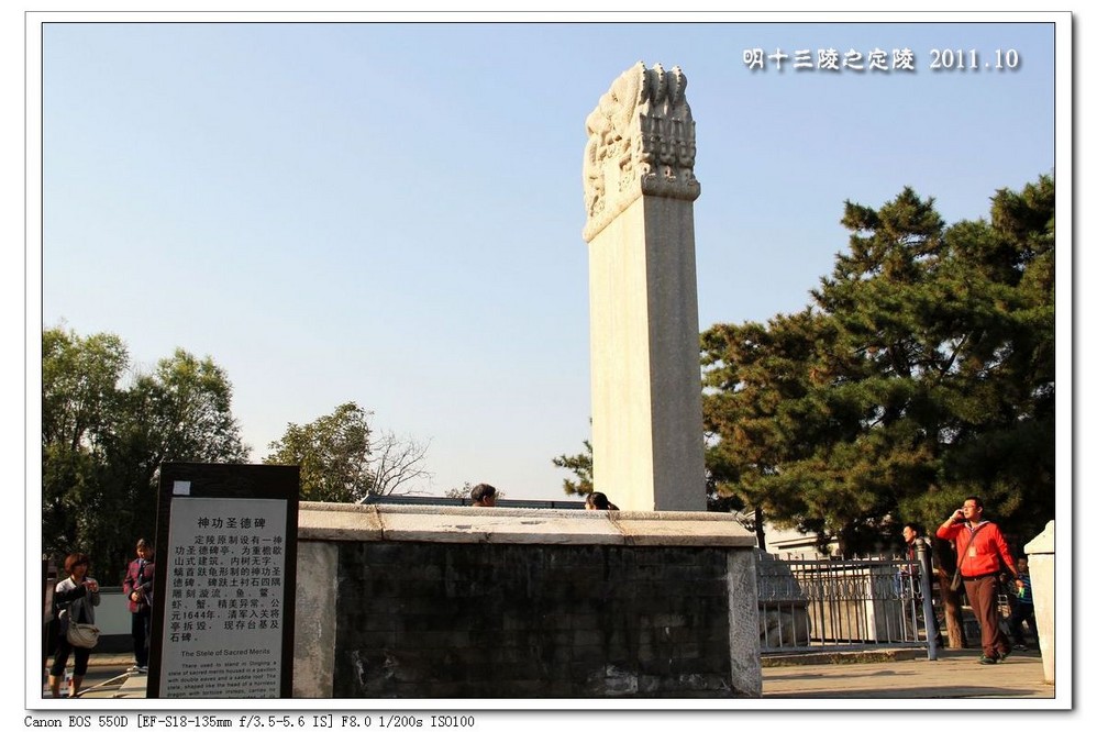 北京 旅游集散中心的上车地点有前门和宣武门,我跟老爸一早六点半就到了宣武门,可惜要等坐满一车人才发车,弄到七点半了才走。一路上感觉比平时工作日的车还少,很顺的到了十三陵,我们要去参观的是定陵。