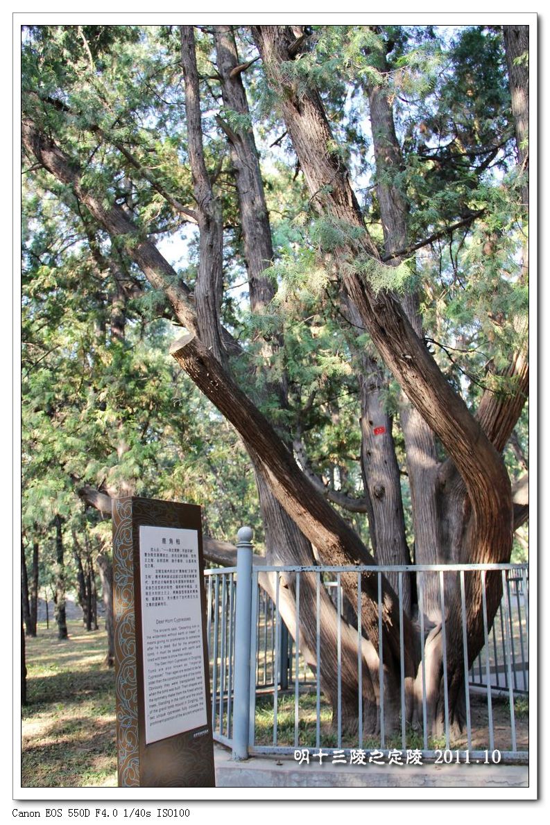 定陵里也是古树参天,挂绿色牌子的树龄是100-300年,挂红色牌子的树龄有300-500年。
