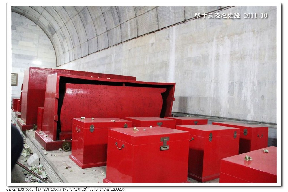 万历皇帝和两个皇后的棺椁(已经是仿制品了)