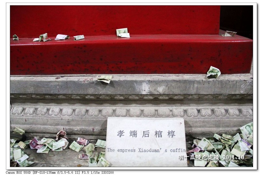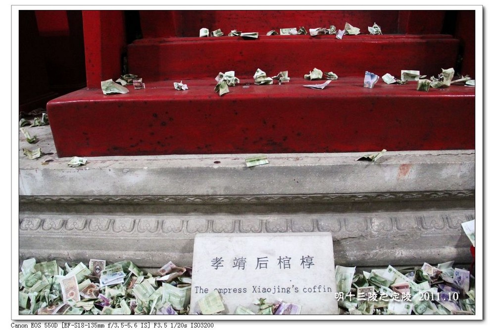 进入定陵地宫前有一道门,进去的时候是不能走的,MS像是“走进了鬼门关”。出来的时候却是一定要走的,并且大家的嘴里还喊着“我回来喽”。有意思。
