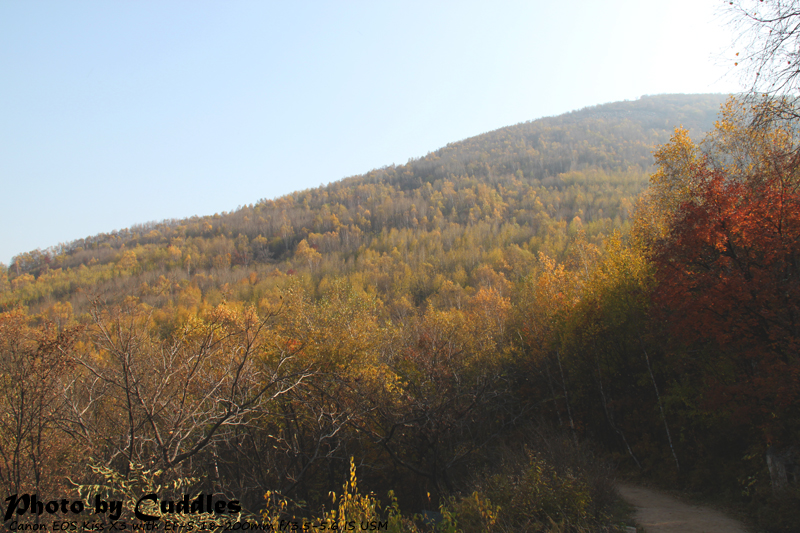 早餐是棒茬粥馒头酱豆腐小咸菜煮鸡蛋。吃过早饭结账,又交了340元。加上之前的200押金,一共是540。驱车前往五龙潭景区,这里被称作是原始森林。门票依然是15元每人。开往景区的路是狭窄的,以至于我们担心会车时怎么办,但是来回的路上并没有遇到车辆,大概是因为10月8号,基本上大家都已经开始上班了依然在景区里的人非常少了。这边的路况比起白桦林要差很多。