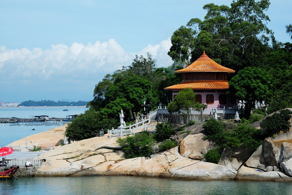 面积只有1平方公里的东门屿实在不大,但是若要把岛上的景点都走一遍的话,也是需要2、3个小时的。岛上有一座建于明代的东明寺,这所寺庙虽然不是非常出名,规模也不是特别巍峨壮观,但是它却是全国海拔最低的寺庙,海拔只有60多公分,离海也只有60多公分,几乎就是海平面平行了。