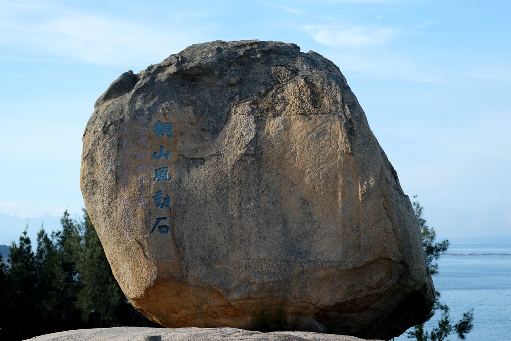 从东门屿返回铜陵镇,下船码头后步行几分钟便可来到最著名的东山风动石风景区了,它是东山岛的主景区,国家AAAA级旅游景区,总面积15万平方米,慢慢游览参观需要半天的时间。历代将相名贤频至铜山视海观风,并留下许多诗文咏赞。造化钟灵秀,胜景遍铜陵。这些景观胜迹,绝大部份即在风动石景区内。