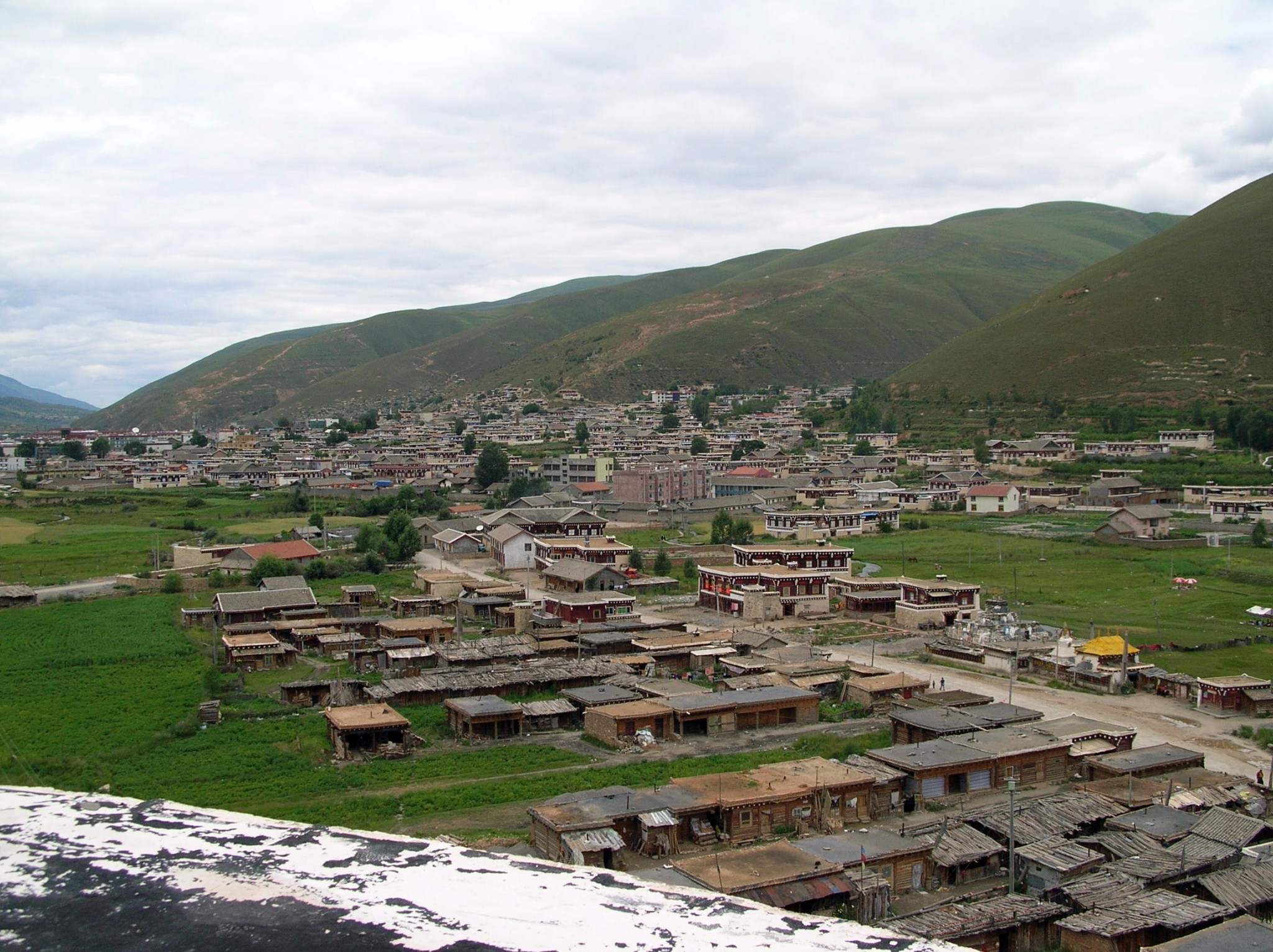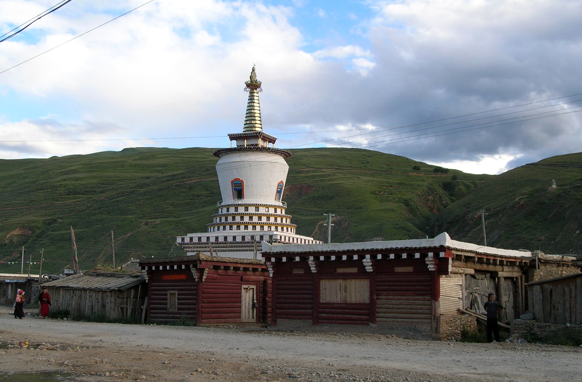 炉霍县城几乎是大地震后全部重建的,房屋建筑颇新。丁字街头立了碑,用汉、藏、英文刻了“甘孜州康北中心炉霍县”、“开放的炉霍欢迎您”。