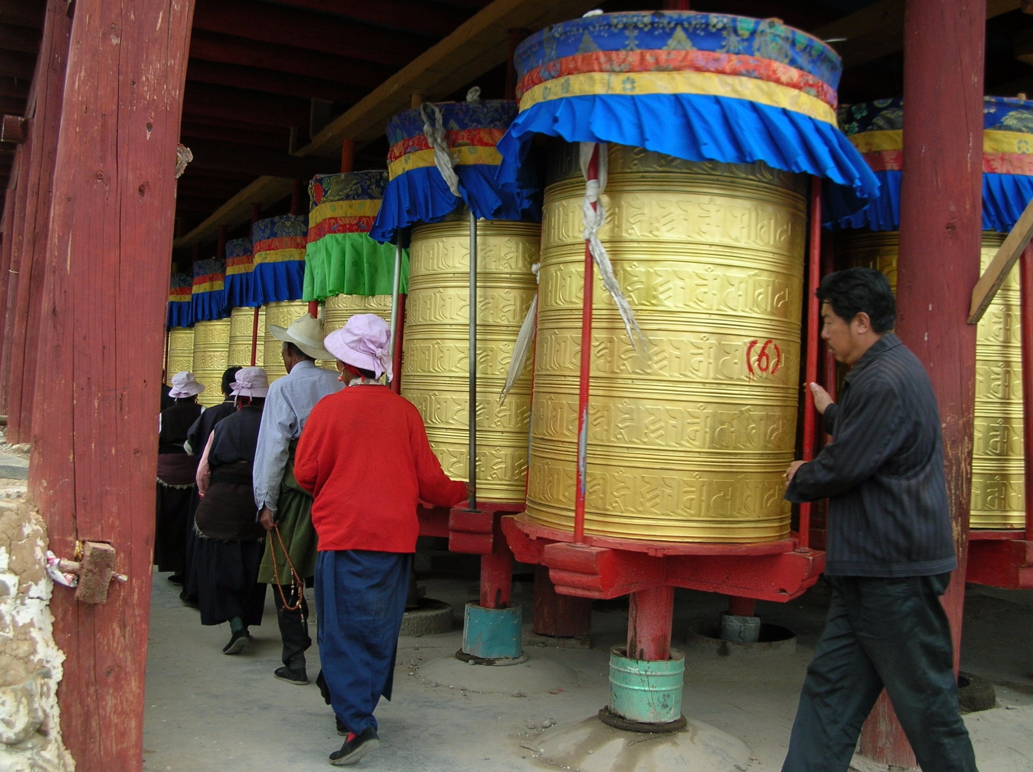 塔外四周一圈有转经筒,许多的拜佛者绕着转经筒虔诚地行进。